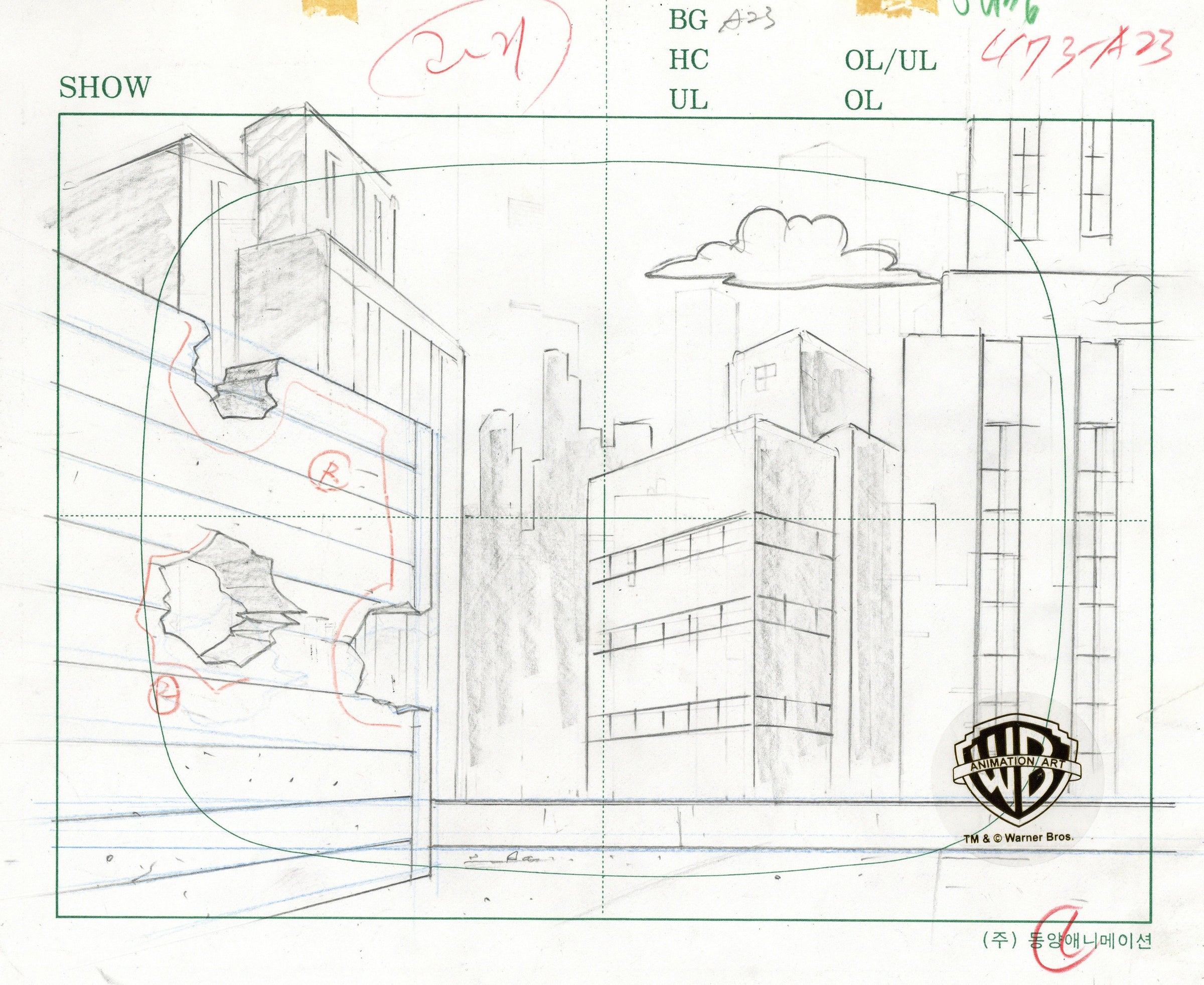 Batman Beyond Original Production Cel on Original Background with Matching Drawings: Batman, Killer Croc