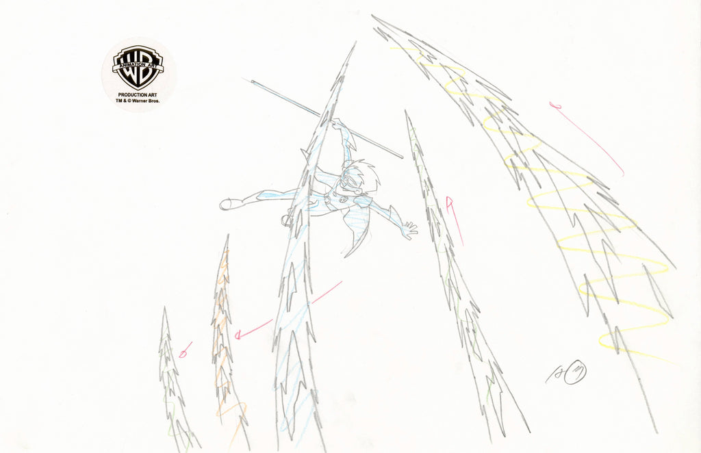 An original production drawing is a piece of art that was used to create an animated film or television show. Prior to the creation of cels, each character's pose and action must be drawn in pencil. These drawings are the artistic backbone of film or television shows and are much in demand by collectors. Original production drawings are one-of-a-kind pieces of art that were used in the creation of an animated film or television show.
