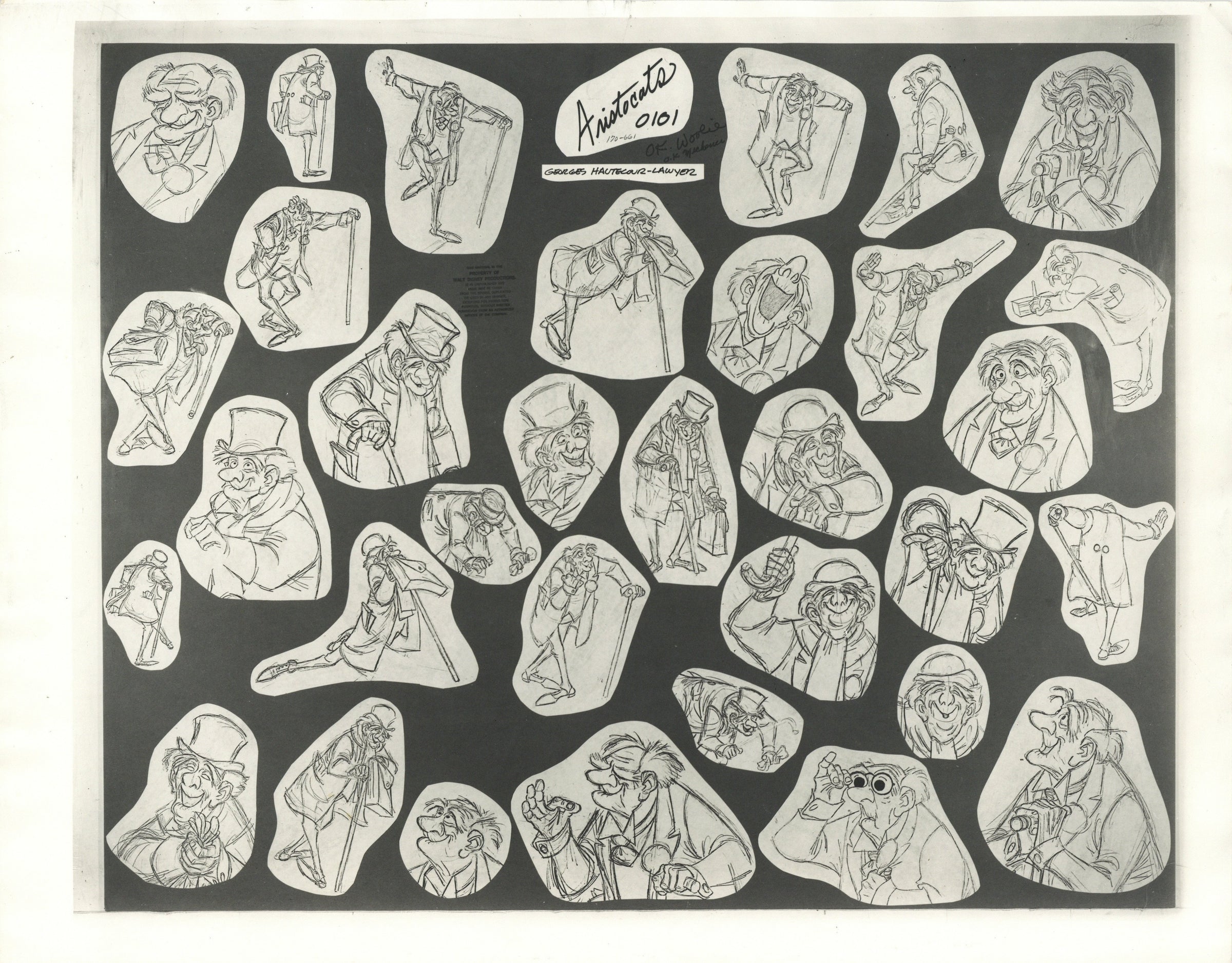 ABOUT THE MEDIUM: Photostat Model Sheets are reference guides used by animators to ensure consistency in character design, proportions, and expressions throughout a film. These printed sheets typically feature multiple poses, facial expressions, and turnarounds of a character, often photocopied from finalized drawings by lead animators. Model sheets help maintain uniformity in animation by providing a standard reference for all artists working on a character, preventing visual discrepancies between different scenes.