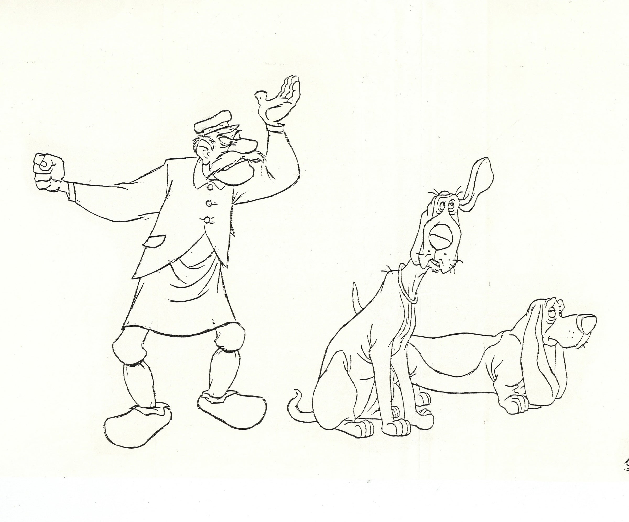 ABOUT THE MEDIUM: Photostat Model Sheets are reference guides used by animators to ensure consistency in character design, proportions, and expressions throughout a film. These printed sheets typically feature multiple poses, facial expressions, and turnarounds of a character, often photocopied from finalized drawings by lead animators. Model sheets help maintain uniformity in animation by providing a standard reference for all artists working on a character, preventing visual discrepancies between different scenes.