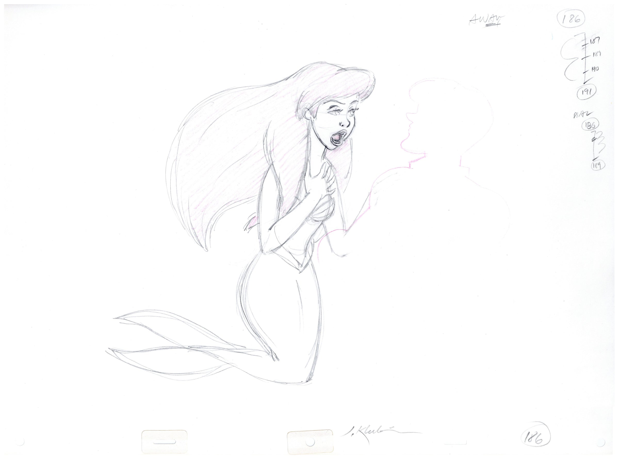 The Little Mermaid Original Production Drawing Signed by Jorgen Klubien: Ariel