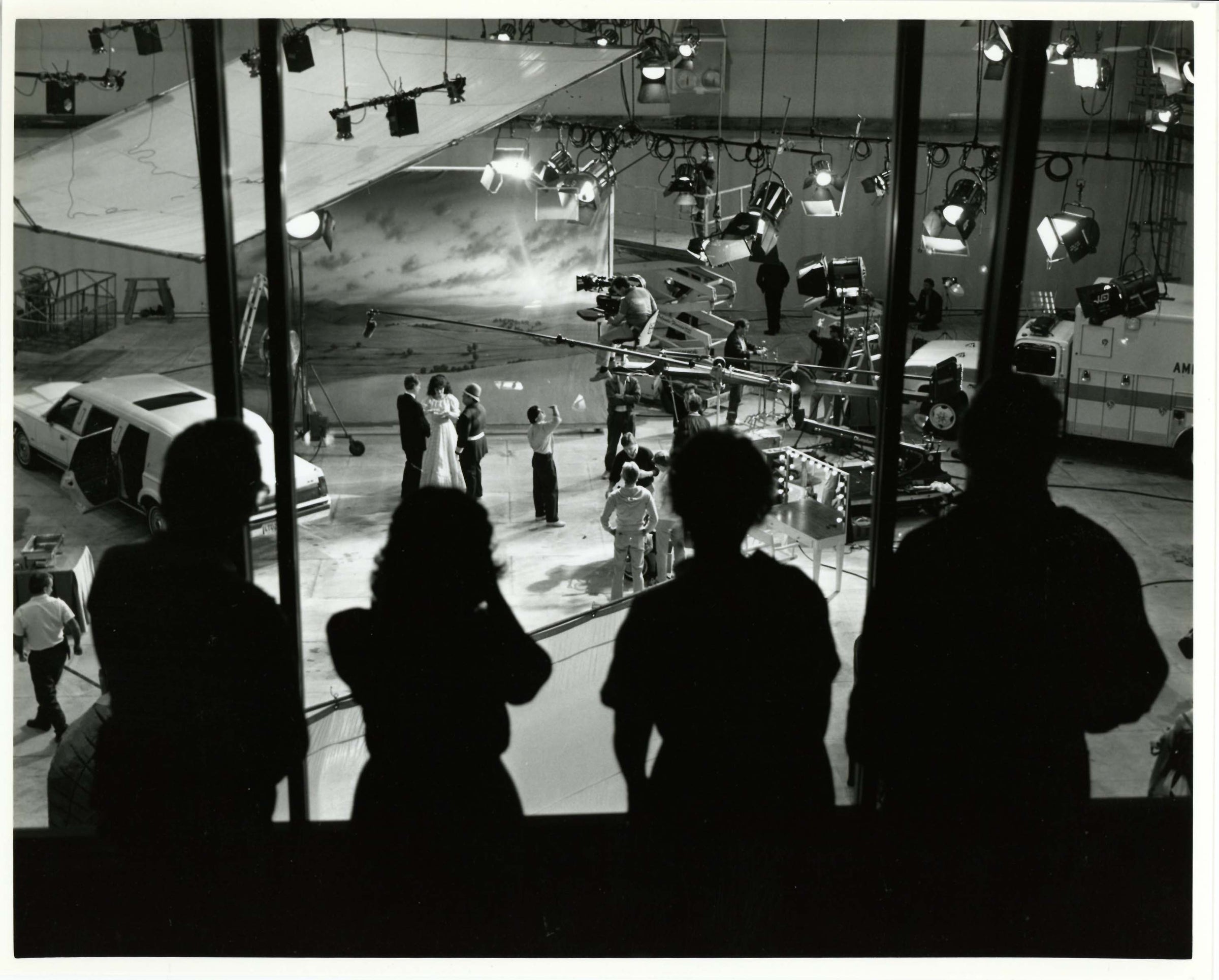 ABOUT THE IMAGE: "SNEAK PREVIEW -- Guests who take the Studio Tour at the Disney-MGM Studios will watch TV and film production on three soundstages from a soundproofed second-floor vantage point. The guest portion of the new complex opens May 1, 1989."