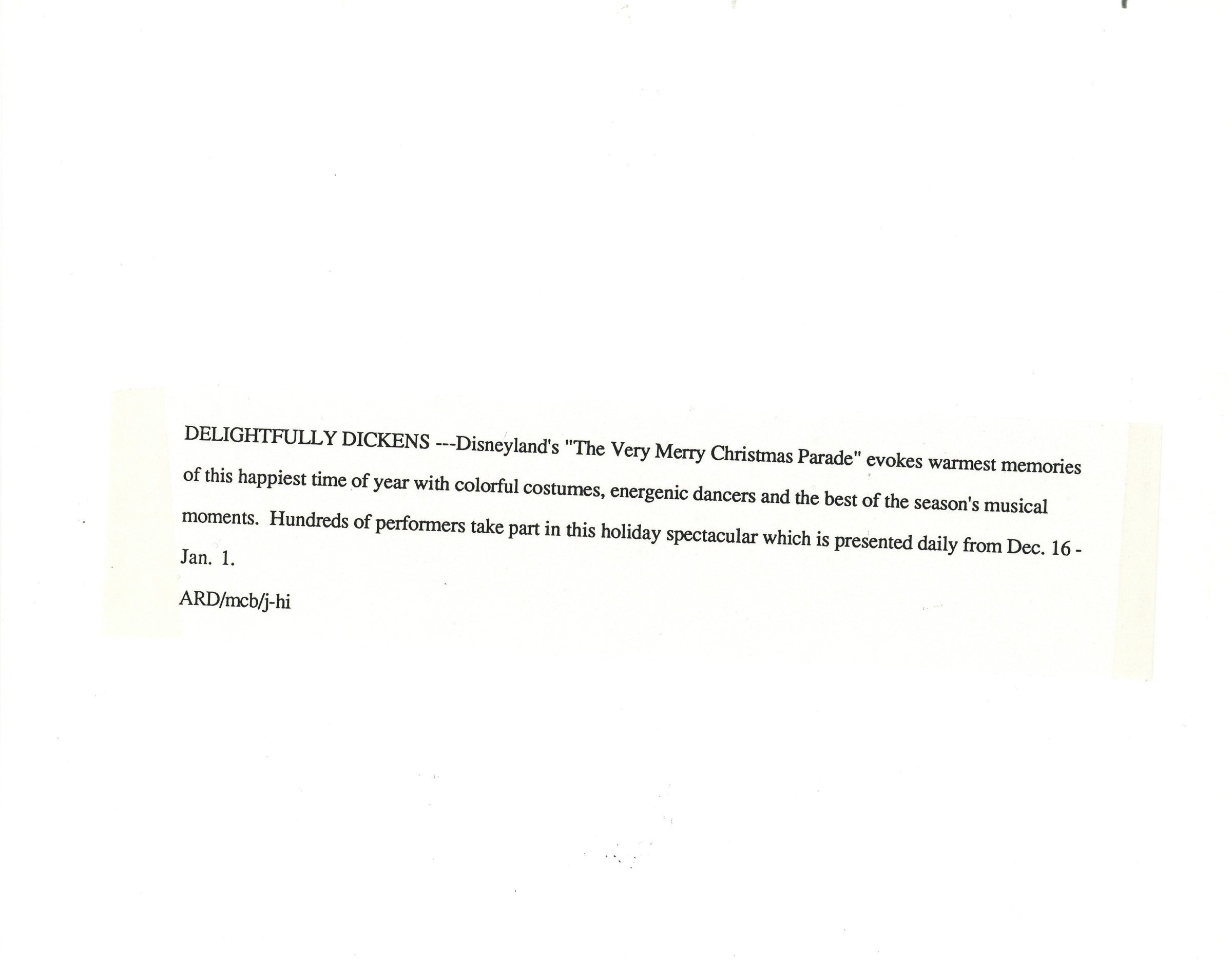 ABOUT THE IMAGE: "DELIGHTFULLY DICKENS -- Disneyland's "The Very Merry Christmas Parade" evokes warmest memories of this happiest time of year with colorful costumes, energetic dancers and the best of the season's musical moments. Hundreds of performers take part in this holiday spectacular which is presented daily from Dec. 16 - Jan. 1."