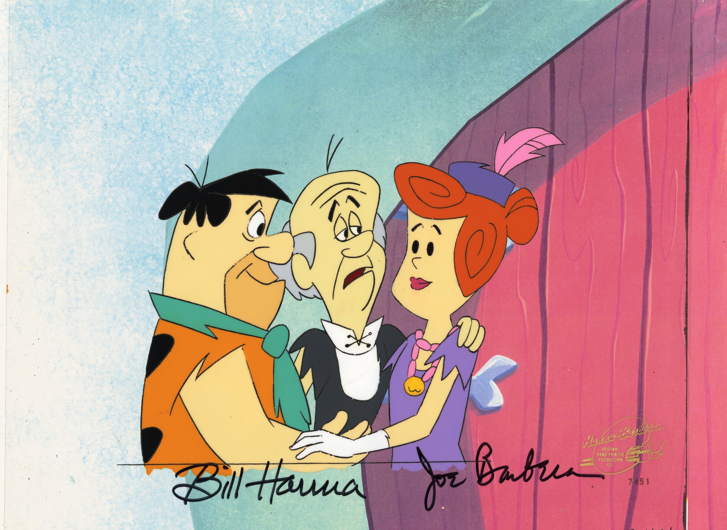 I Yabba-Dabba-Do! Original Production Cel Signed by Bill Hanna and Joe Barbera: Fred, Wilma