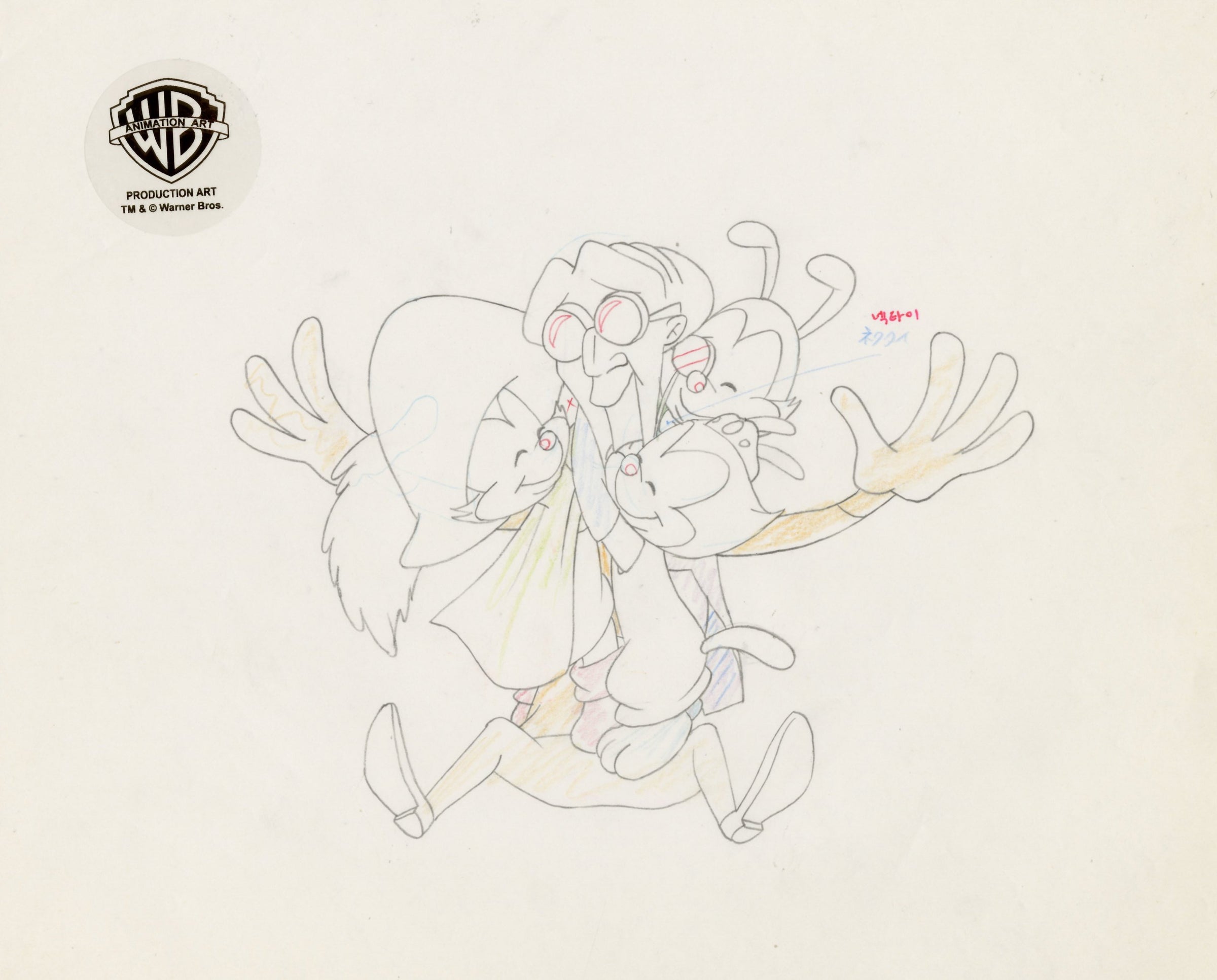 Animaniacs Original Production Drawing: Dr. Scratchansniff, Yakko, Wakko, Dot