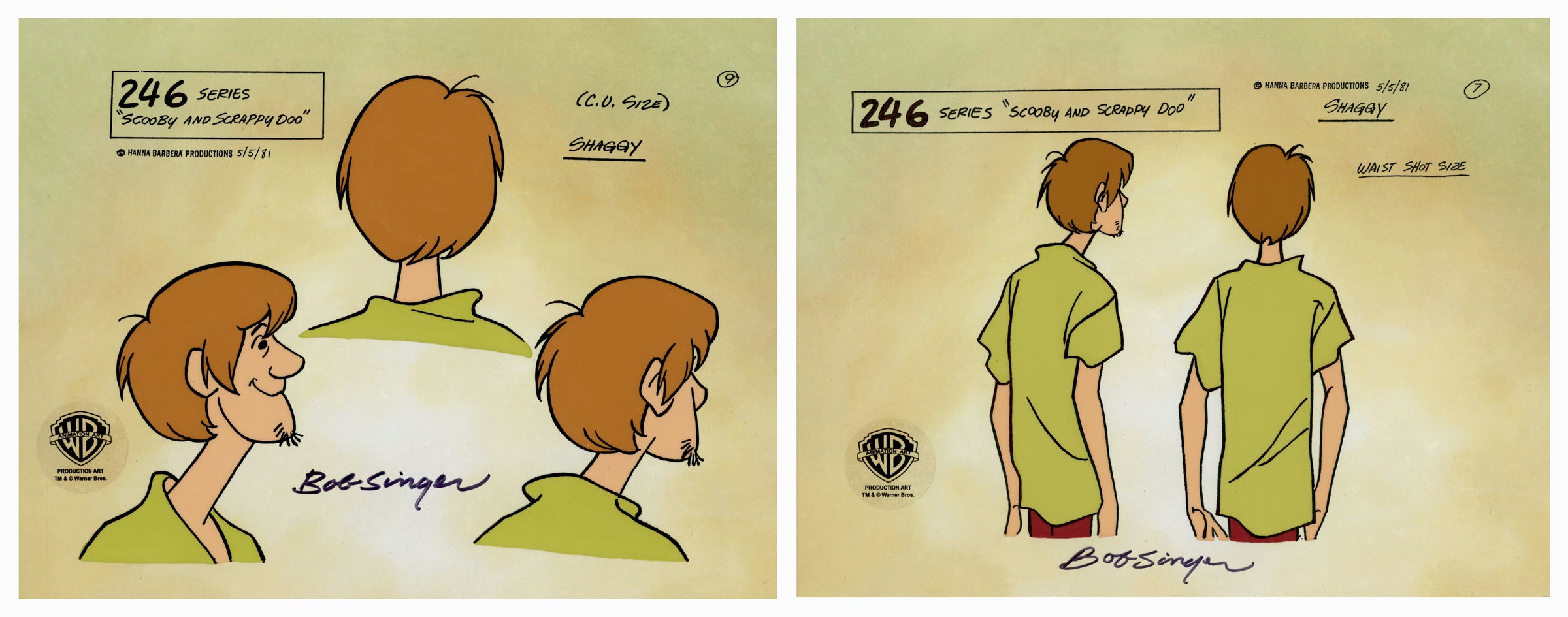 Hand Painted Model Sheet Cel Signed by Bob Singer: Shaggy (Set of 2)