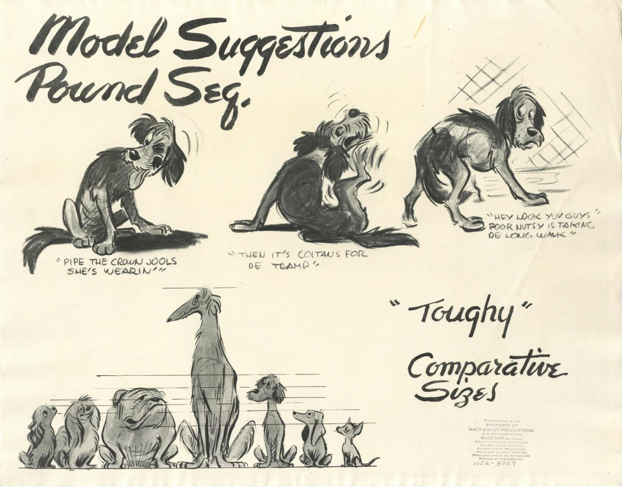 Lady and the Tramp Original Stat Model Sheet: Pound Dogs Size Comparison Chart