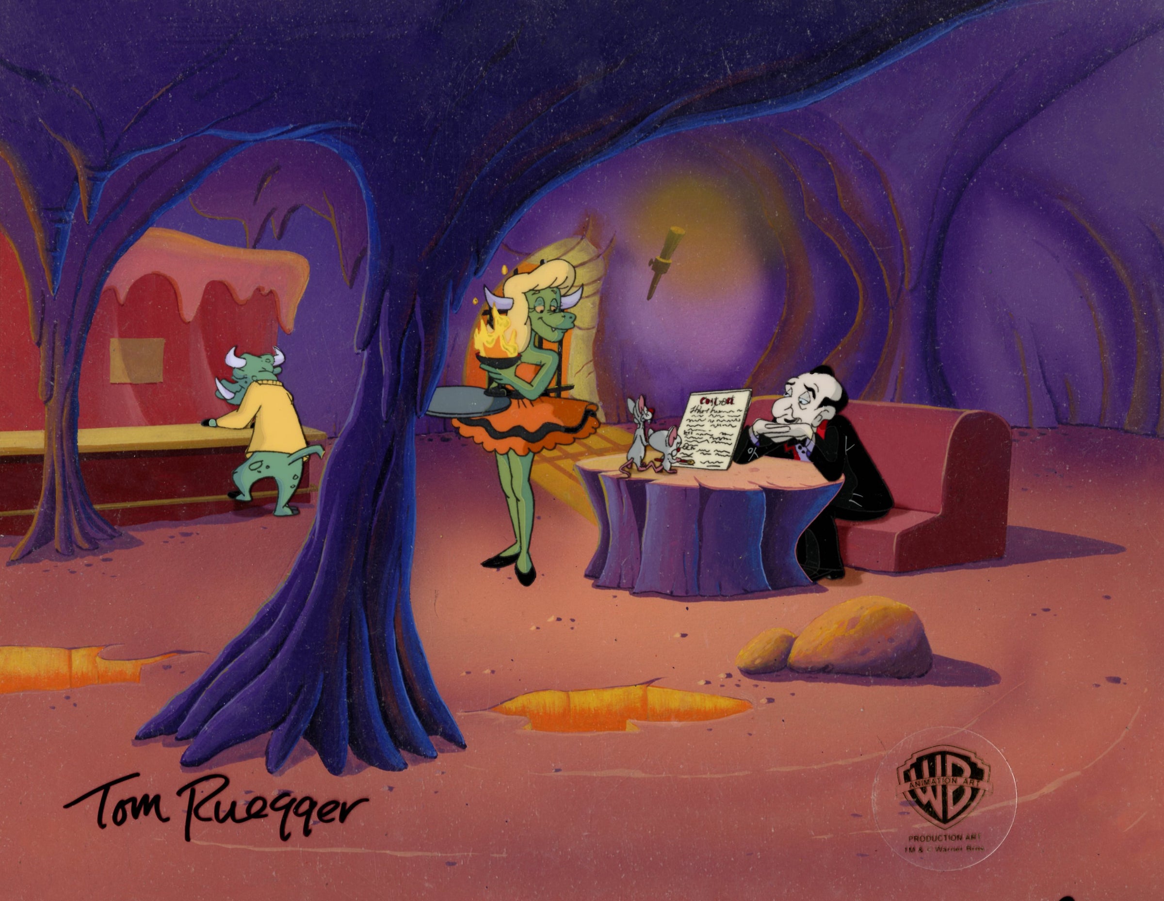 Pinky And The Brain Original Production Cel on Original Background Signed Tom Ruegger: Pinky, Brain, Mr. Itch