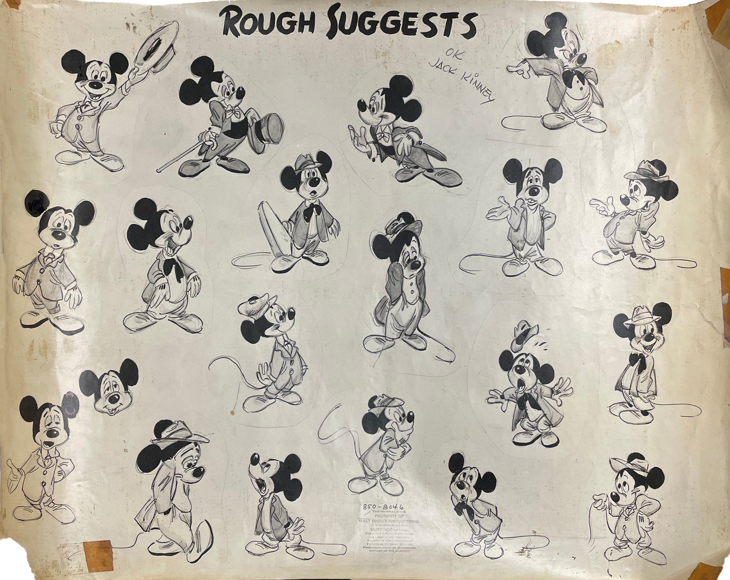 NOTES: "OK JACK KINNEY" has been reproduced below the title of the model sheet. This piece shows signs of heavy production wear: creases, wrinkling, aged tape, and small tears. Due to its size, this piece will be shipped rolled in a tube.