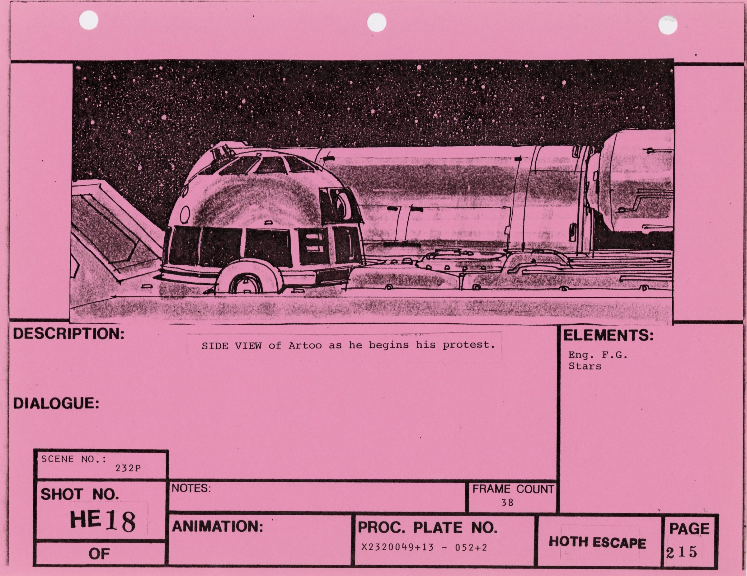 ABOUT THE ART: This storyboard print comes from the collection of award-winning miniature and optical effects artist Lorne Peterson. Peterson was invited by fellow model maker John Dykstra to work in the miniature and optical effects department of George Lucas' Star Wars: A New Hope, where he helped design and build the Star Destroyers, Imperial TIE fighters, and other classic vehicles. During pre-production, Peterson, Dykstra, and their cohort of fellow artists working under Lucas co-founded effects company Industrial Light & Magic.