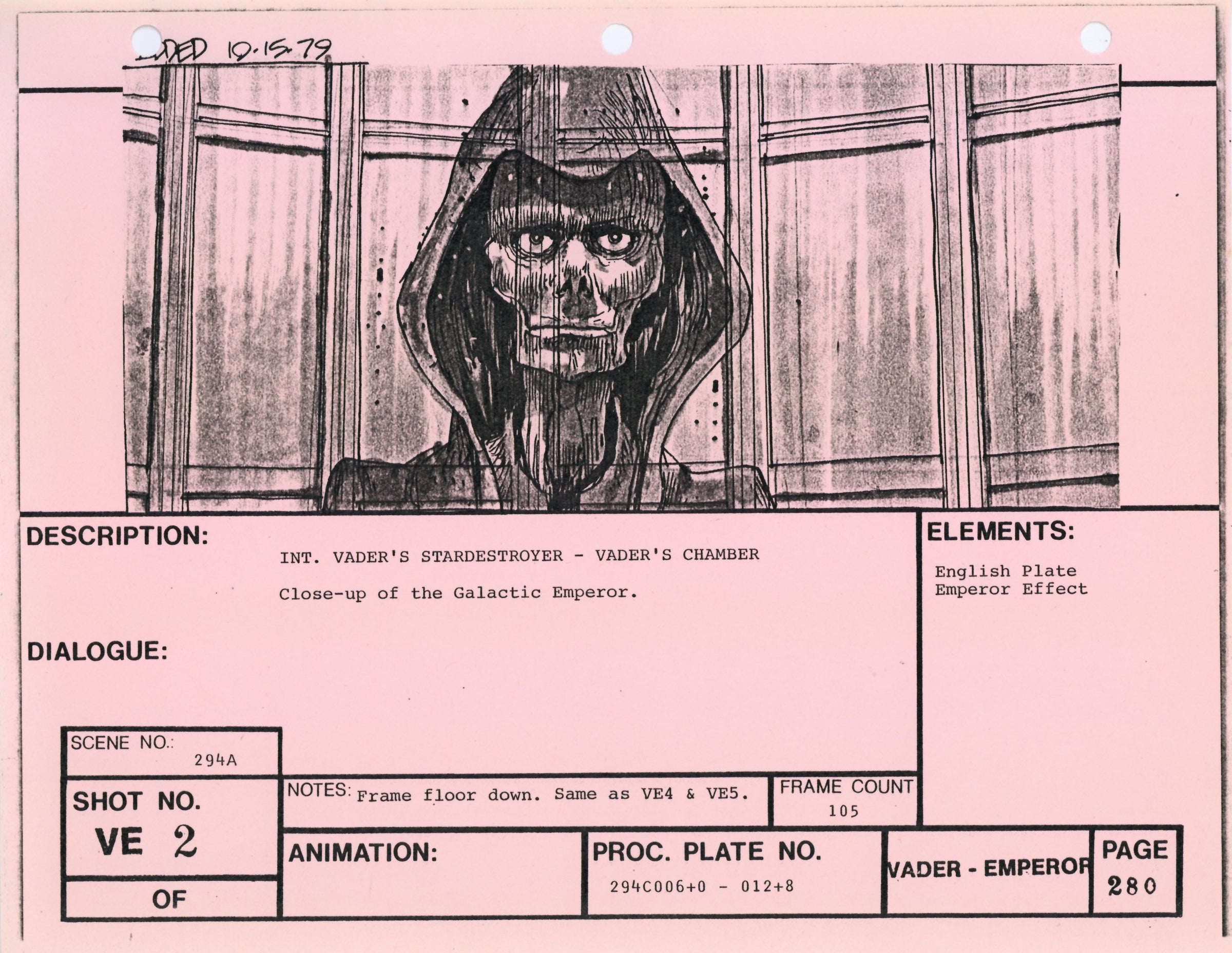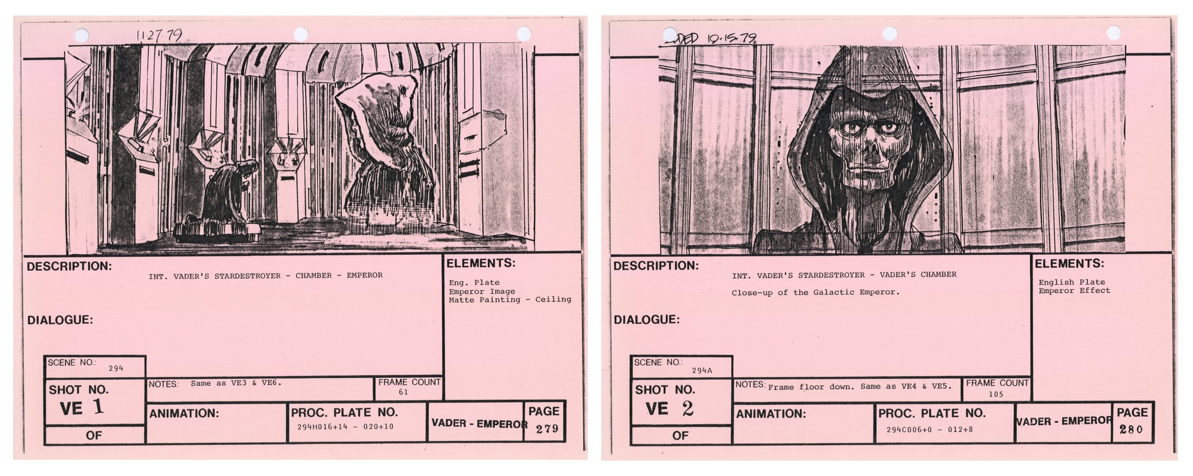 Star Wars: The Empire Strikes Back - VFX Storyboard Pair: Vader Emperor 1+2