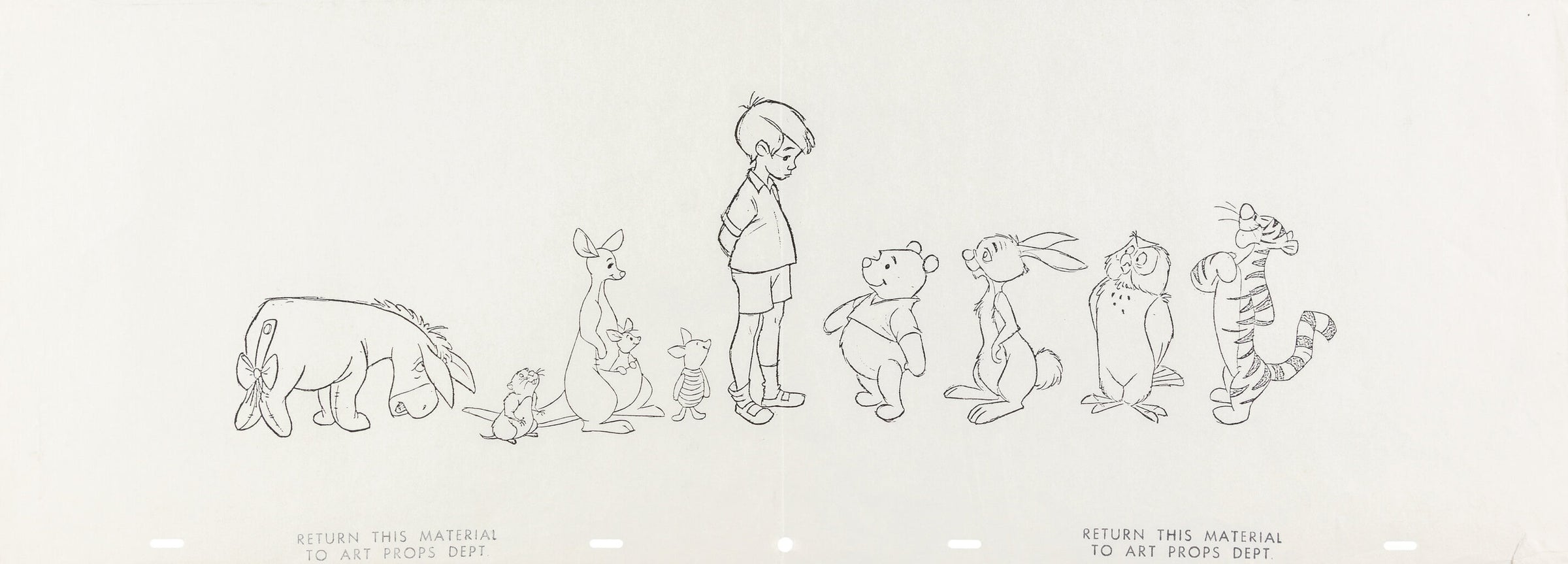 Comparative Size Chart (Eeyore, Gopher, Kanga, Roo, Piglet, Christopher Robin, Winnie the Pooh, Rabbit, Owl, Tigger)