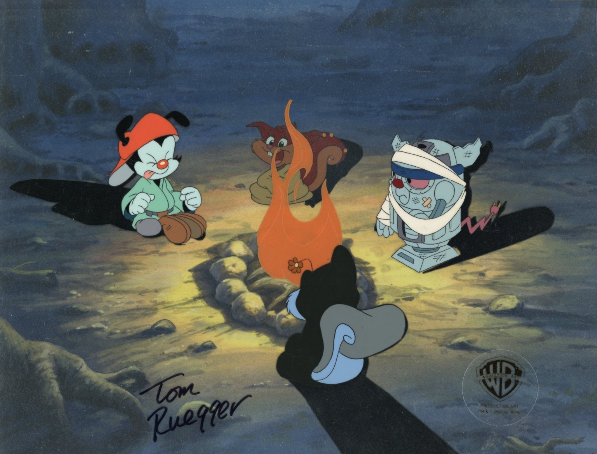 Star Warners Original Production Cel on Original Background Signed by Tom Ruegger: Wak Skylicker, Skippoda, Brain2-Me2, Slappy Wanna Nappy