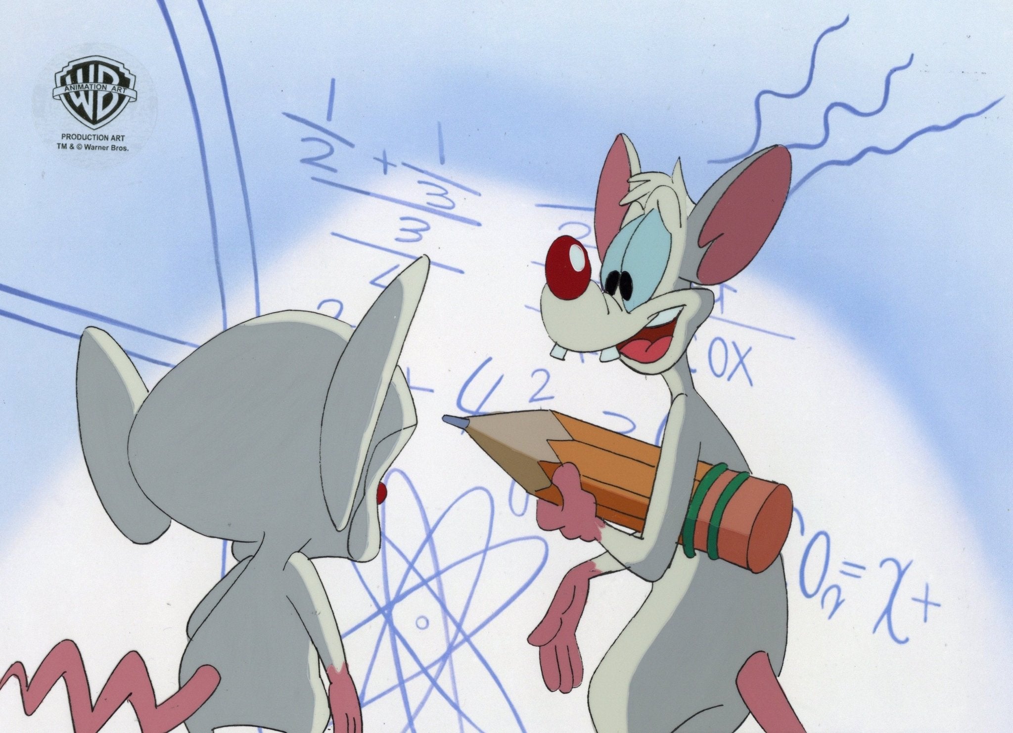 ABOUT THE IMAGE: Pinky and the Brain is a cartoon that follows a self-proclaimed genius, The Brain, and his dimwitted sidekick, Pinky, as they try to conquer the world. Pinky and the Brain was the first animated television series to be presented in Dolby Surround. It was created by Tom Ruegger and the fourth collaboration between Steven Spielberg's production company, Amblin Entertainment and Warner Bros. Animation. The characters first appeared in 1993 as a recurring skit on the show Animaniacs. Thanks to its popularity it was later spun off as a series. There were 66 episodes produced. This piece comes with a certificate of authenticity.