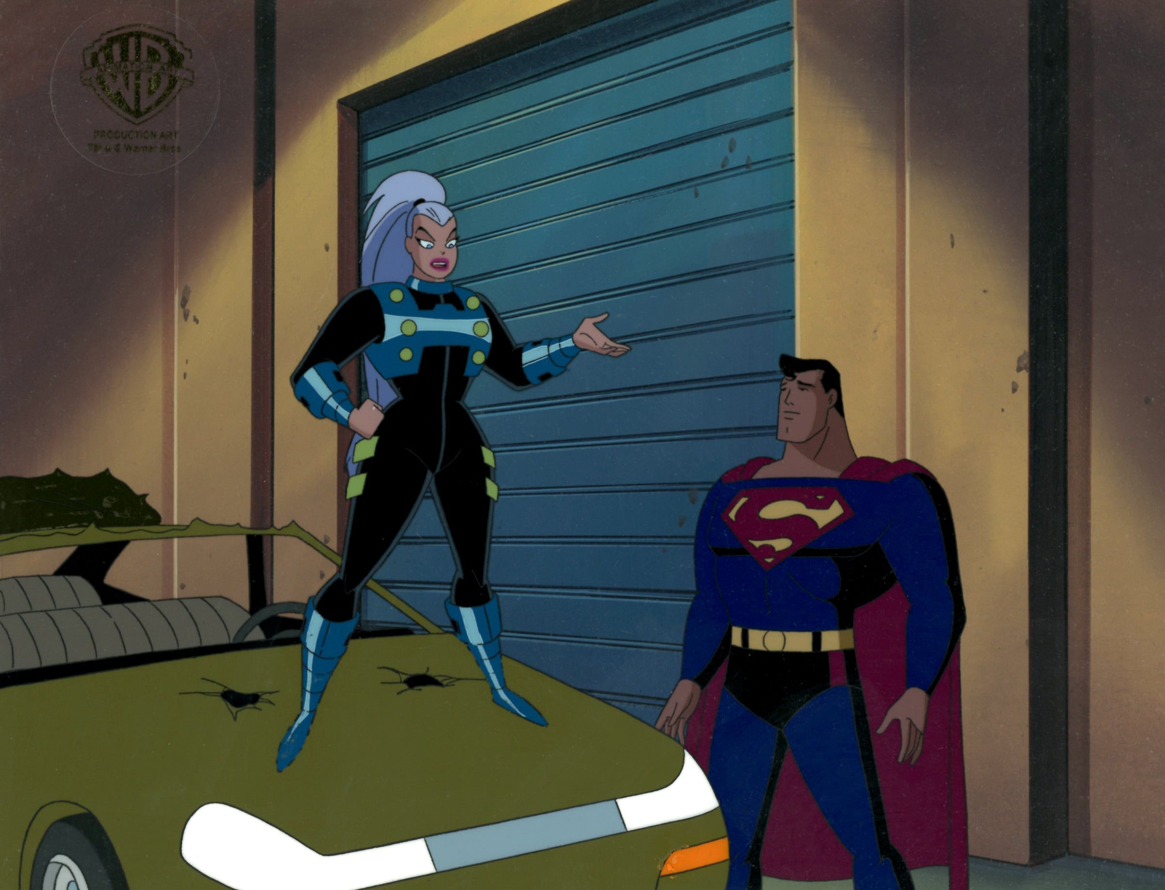 Superman the Animated Series Original Production Cel On Original Hand-Painted Production Background: Superman and Mala