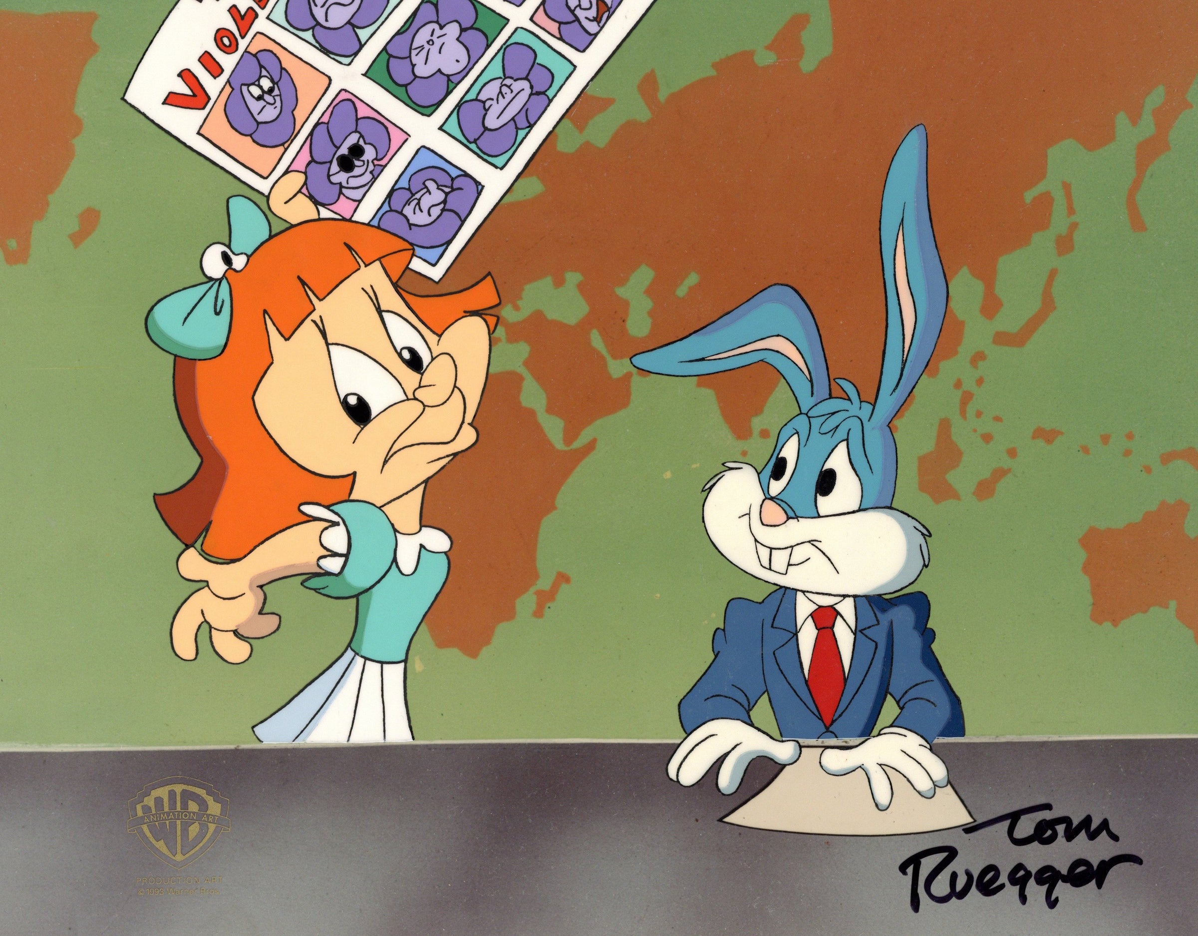 ABOUT THE IMAGE: Steven Spielberg Presents Tiny Toons, usually referred to as Tiny Toon Adventures, an American animated television series created by Tom Ruegger and produced by Amblin Entertainment and Warner Bros. Animation. In this series, a new generation of characters study at Acme Acres Looniversity under the instruction of the classic Looney Tunes characters. The leading characters are Buster and Babs Bunny (no relation) who, with their classmates, have a variety of adventures that are a mix of original stories, film and TV parodies and modern remakes of classic WB shorts. This piece comes with a certificate of authenticity.