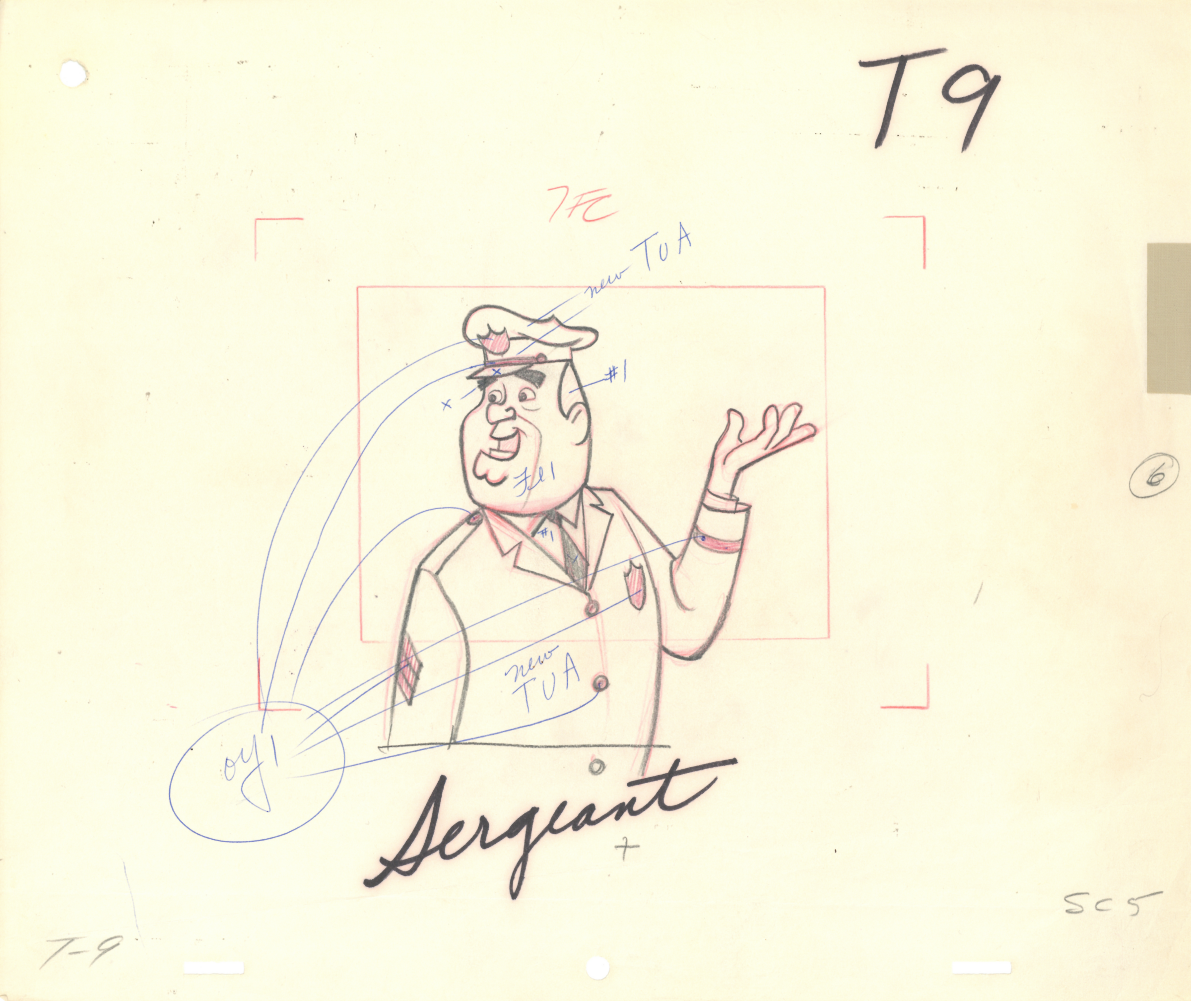 Set of 3 Top Cat Original Production Layout Drawings: Sergeant and Thugs