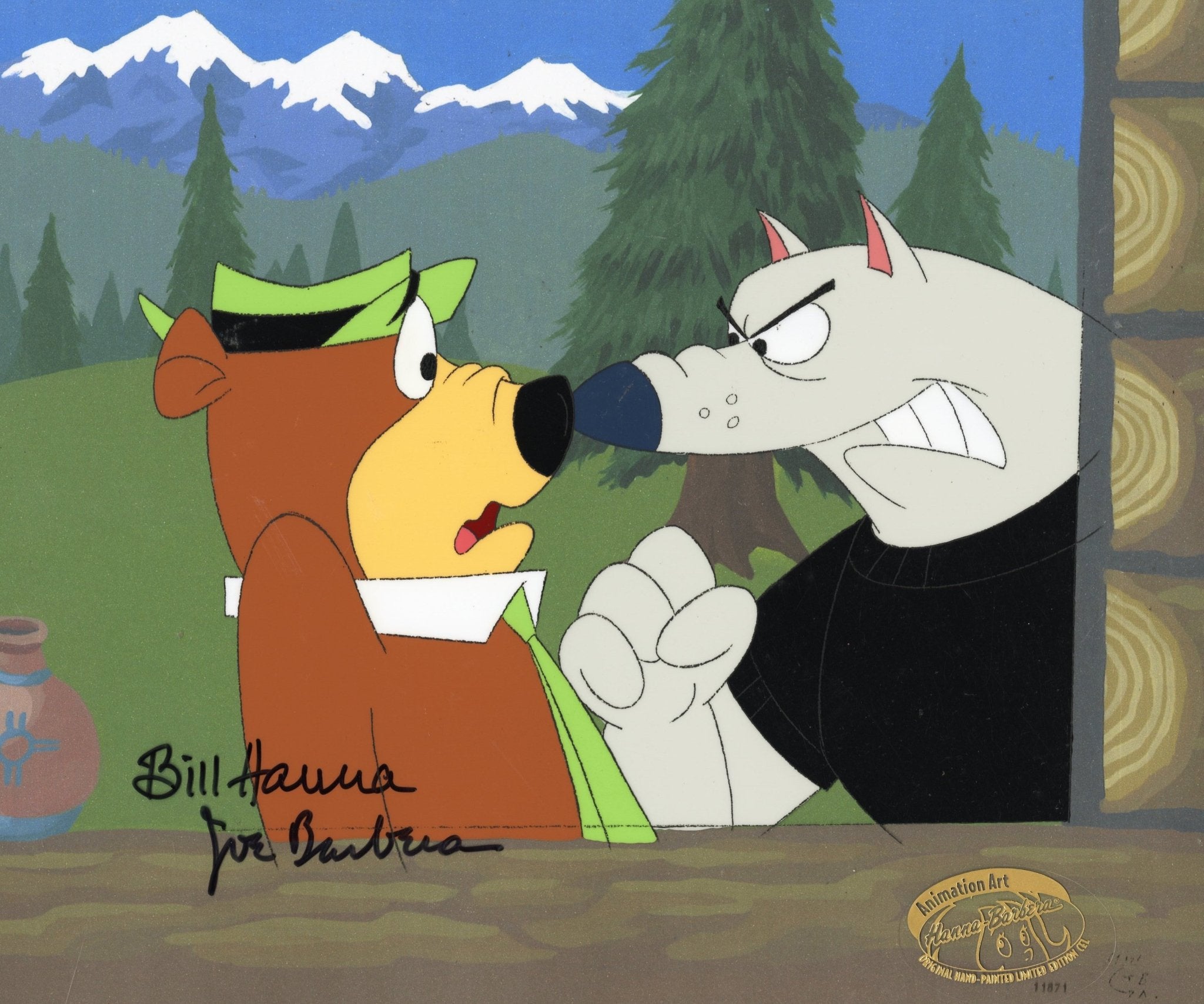 Yogi Bear Original Production Cel Signed by Bill Hanna and Joe Barbera: Yogi