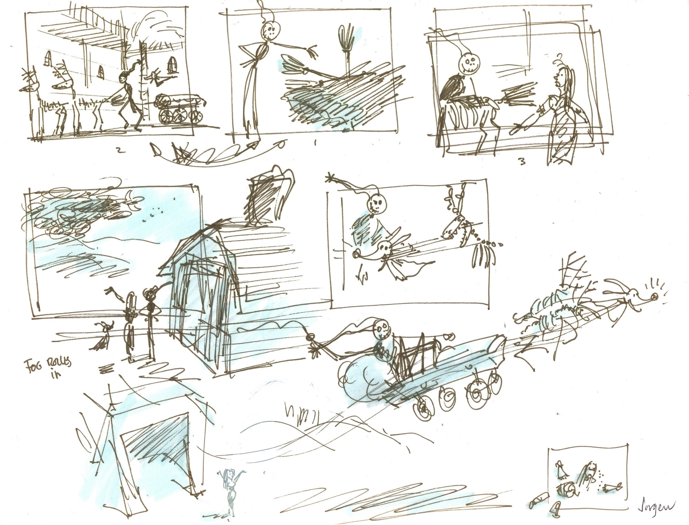 MEDIUM: Original Storyboard Drawing IMAGE SIZE: 11" x 8.5" PRODUCTION: The Nightmare Before Christmas (1993) SIGNED: Jorgen Klubien SKU: CCV3586