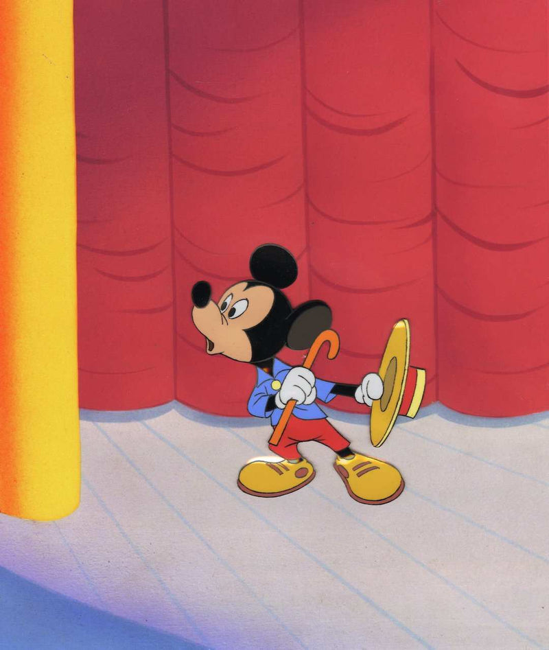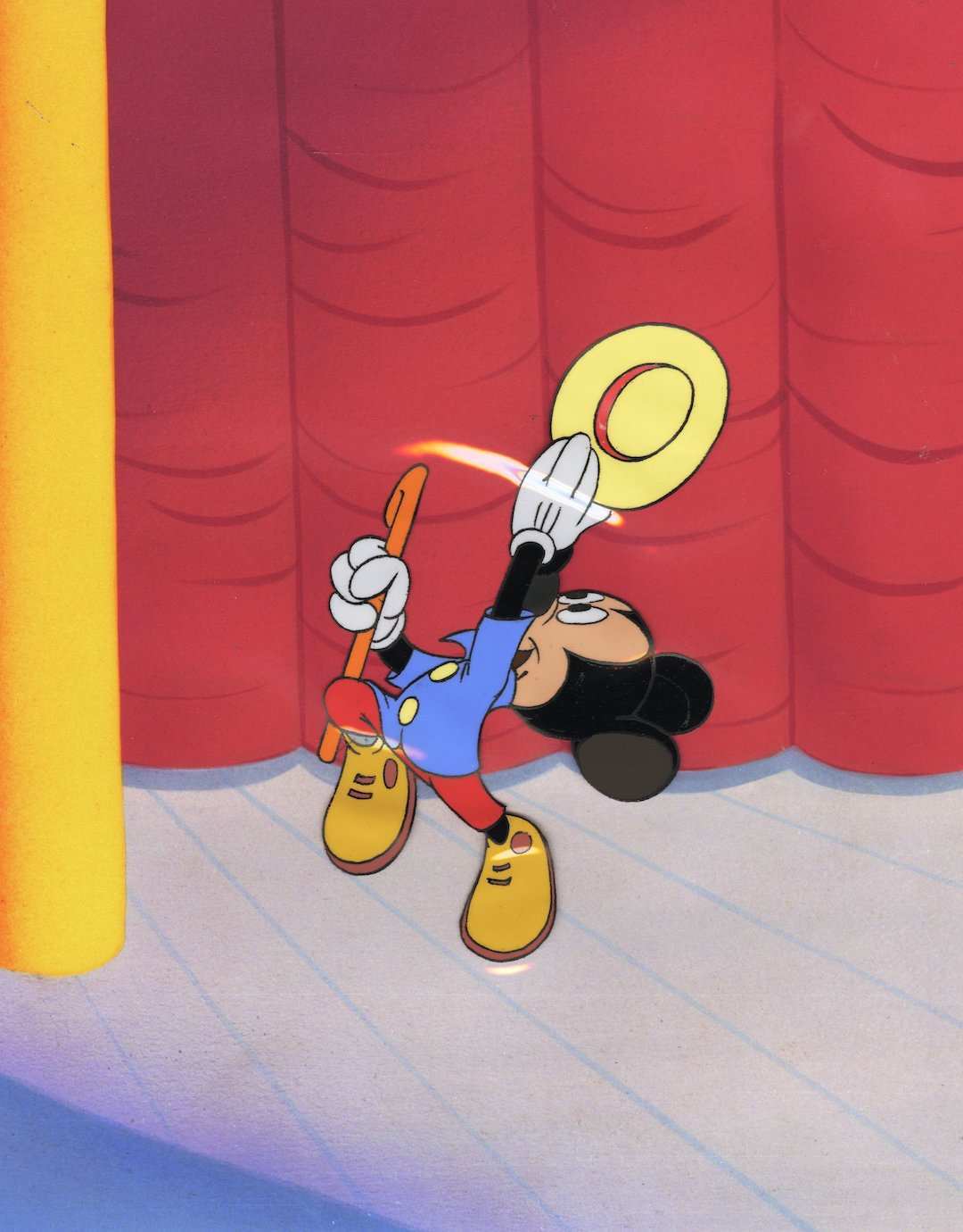 ABOUT THE IMAGE: "Mickey's 40th Birthday" took a nostalgic look back at the iconic cartoon character we all love. Here is a rare sequence of six original hand-painted production cels of Mickey Mouse with a straw hat and cane from this episode. This is something of a reprise of the 1942 short Mickey's Birthday Party, where he wore a similar outfit. In this sequence, Mickey does a little soft-shoe routine; in the show, his 1928 version dances along with him.
