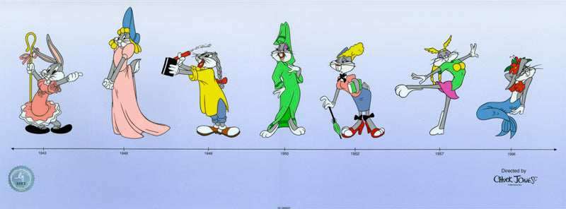 ABOUT THE IMAGE: Seven of the many faces of Bugs Bunny in drag, along with the years in which he previewed them.