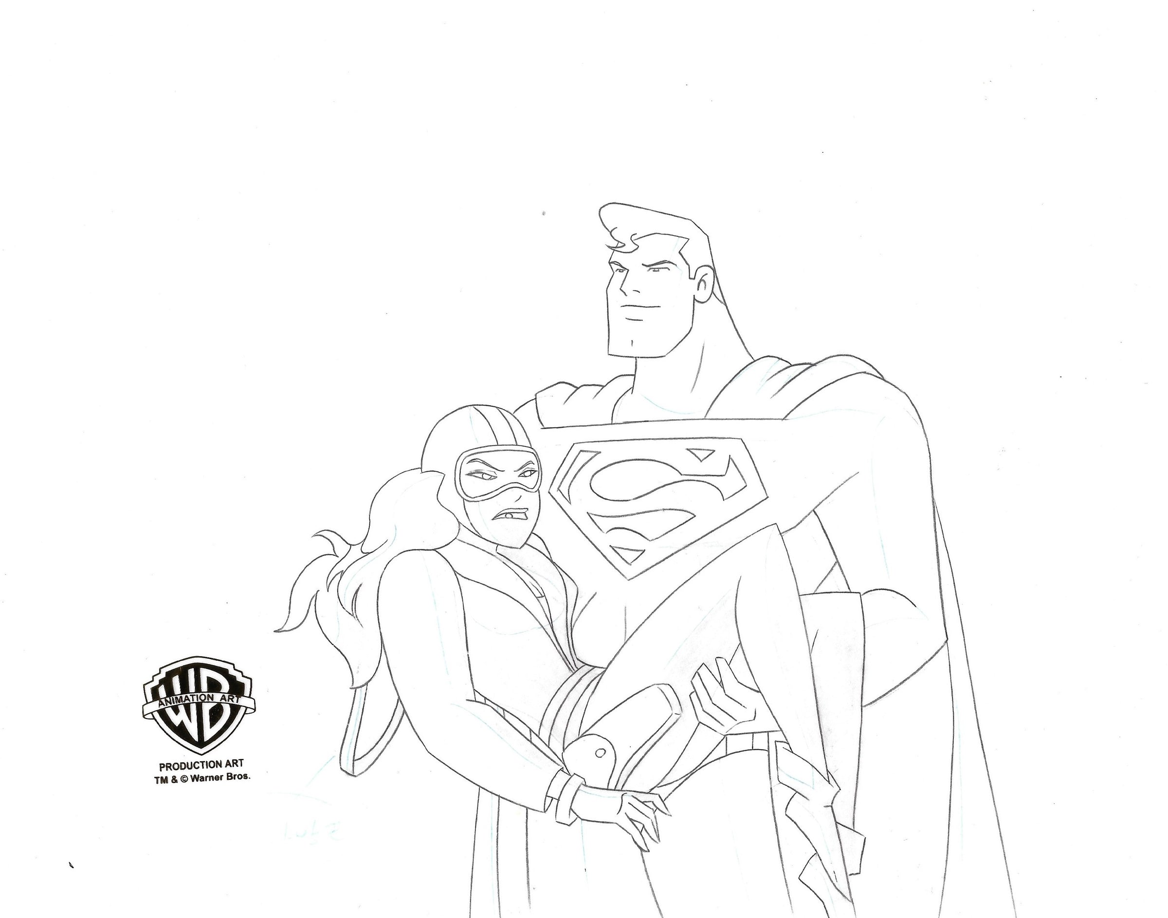 Superman The Animated Series Original Production Drawing: Superman, Roxy Rocket