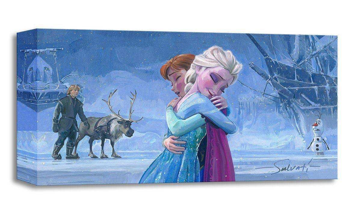 "Even with my Disney art, I think it's important to show who a person or character is and what is the most interesting part of their life—the part that is bold and has guts." Character and boldness can be observed in the scenes that Salvati chooses to depict. They are often not only a defining moment of a film, but usually the most emotionally charged and sometimes heartbreaking. Bambi alone in the woods, the Huntsman with Snow White, and Scar leaving Simba in the canyon, are all turning points in the story, and when the main character had to show their "guts" or courage.
