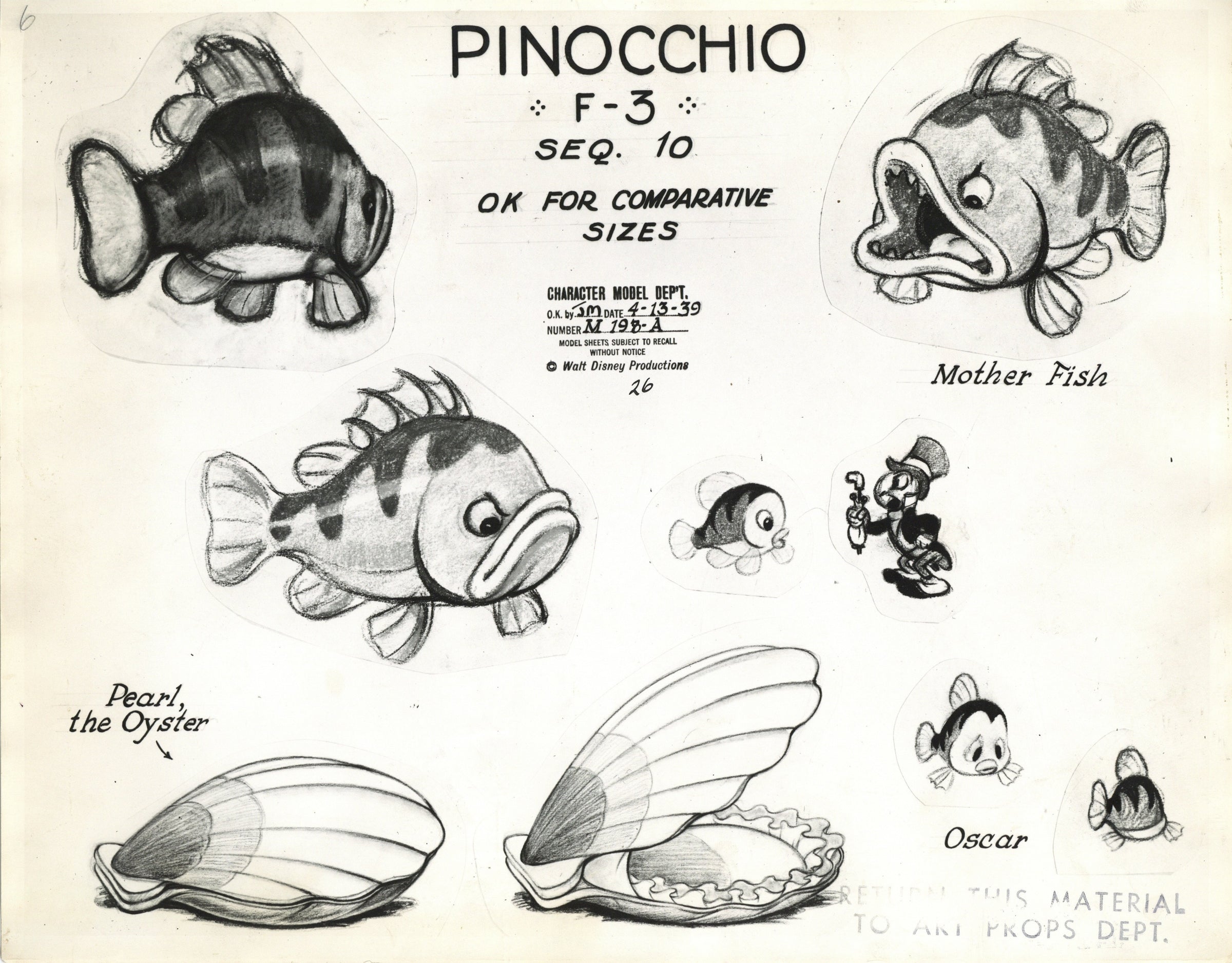 Pinocchio Original Stat Model Sheet: Mother Fish, Pearl, Oscar