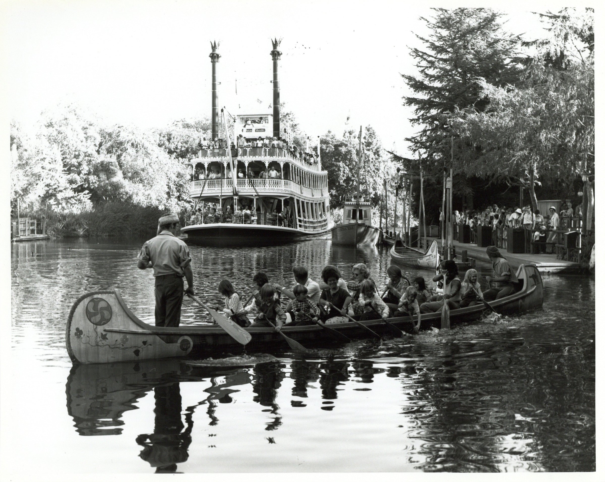 ABOUT THE IMAGE: "LAZY DAYS -- The month of October at Disneyland offers guests a less hurried pace and cooler temperatures for the enjoyment of more than 50 attractions in seven themed lands, including the thrilling "Splash Mountain" attraction in Critter Country. Guests can paddle their way around the Rivers of America is one of Davy Crockett's Explorer Canoes or cruise aboard the stately steam-powered Mark Twain stern-wheeler. The weekend offers performances of the "Party Gras" Parade and the Dick Tracy musical stage show, "Diamond Double-Cross."