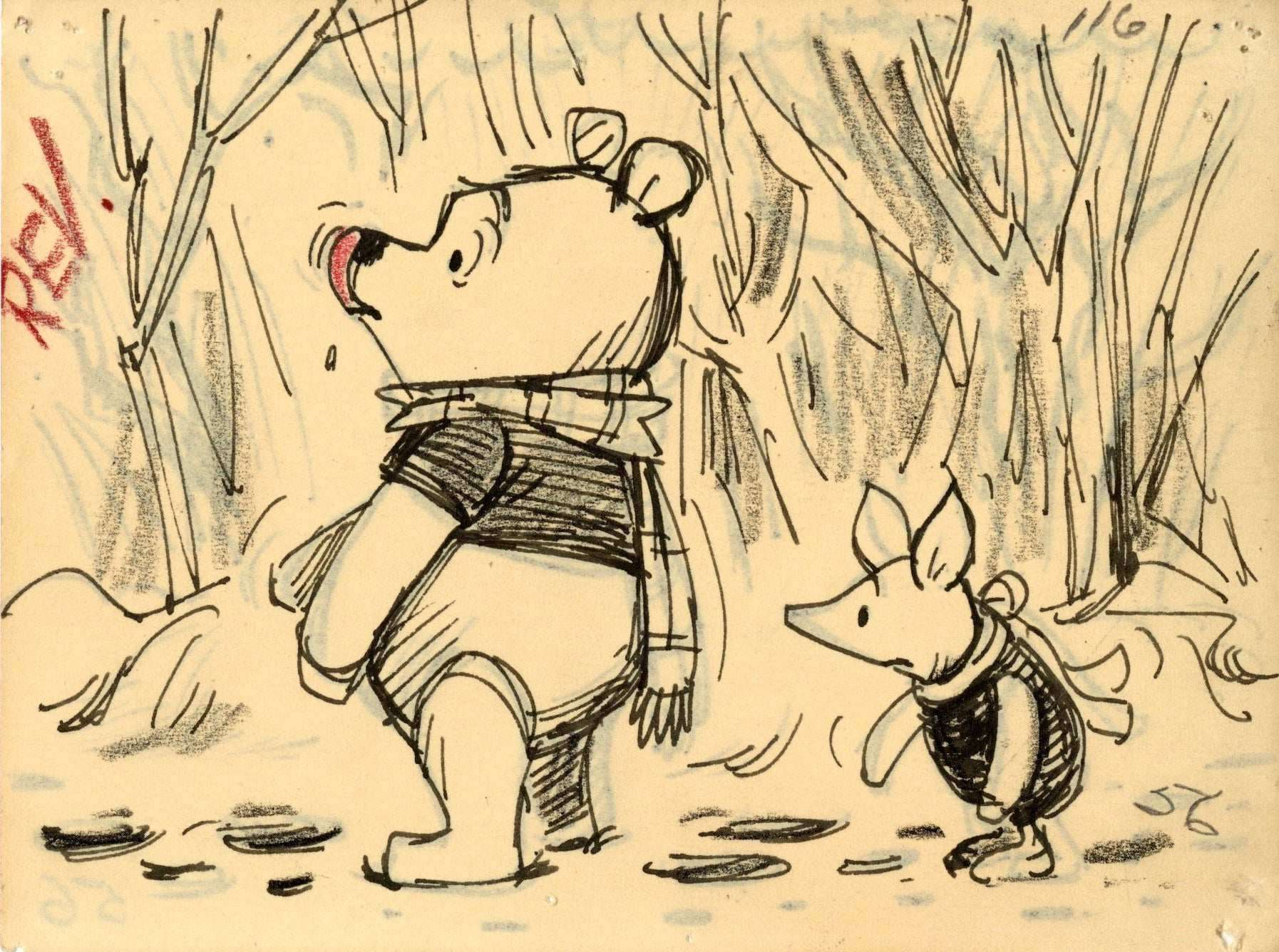 MEDIUM: Original Storyboard Drawing (Double-Sided) with Matching Dialogue Tag IMAGE SIZE:6" x 4.5" PRODUCTION: Winnie the Pooh and Tigger Too, 1974 SKU:CCV1875