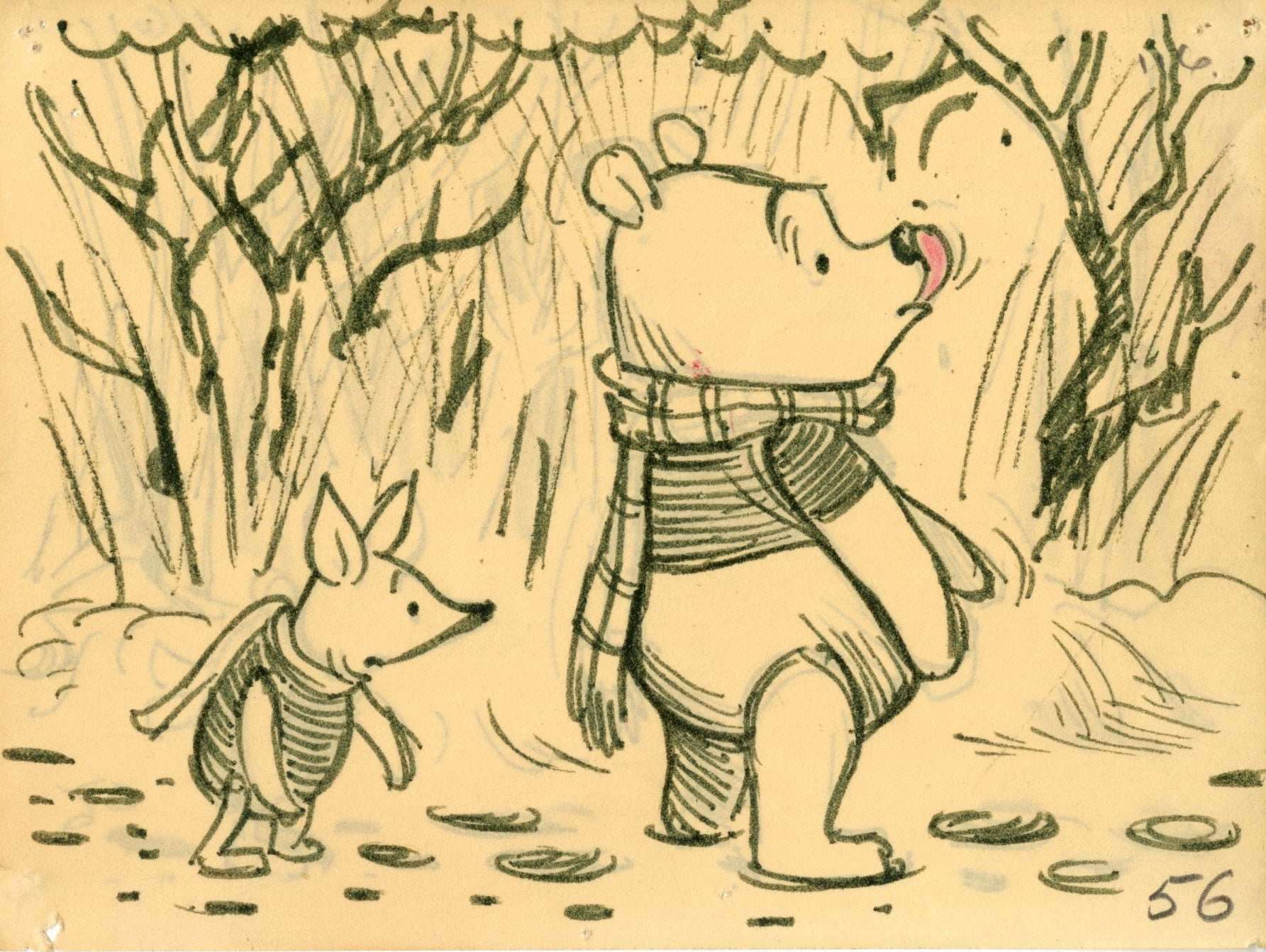 Winnie the Pooh and Tigger Too Original Double-Sided Storyboard Drawing with Matching Dialogue Tag: Pooh, Piglet