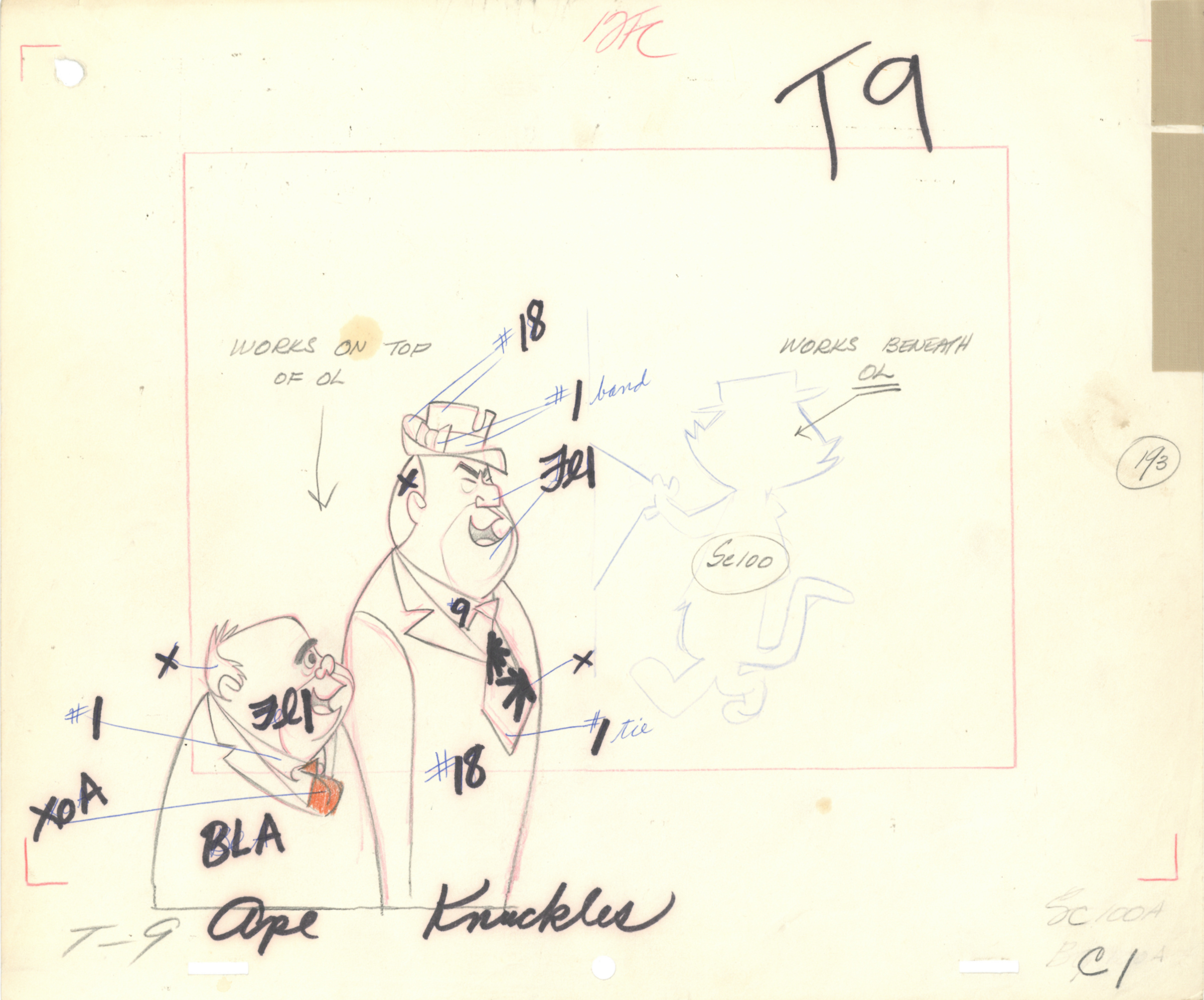 Set of 3 Top Cat Original Production Layout Drawings: Sergeant and Thugs