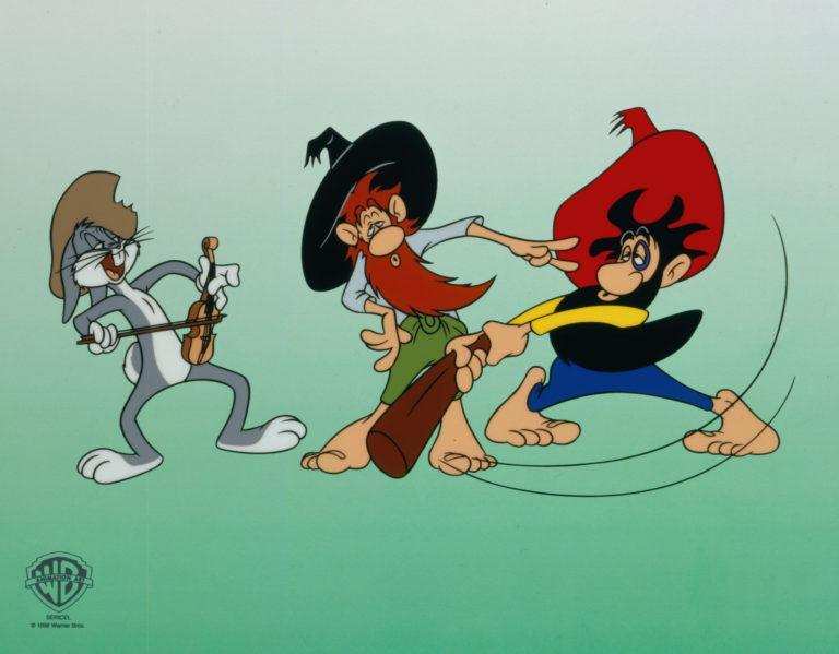 ABOUT THE IMAGE: “Swing Your Partner” is from the 1950, Robert McKimson cartoon “Hillbilly Hare.” While Bugs Bunny is vacationing in the Ozarks he runs into two hillbilly brothers, Curt and Punkin’head who think Bugs would make a tasty meal. In this scene Bugs decides to have some fun with the brother’s while they are square dancing. Unbeknownst to the brothers Bugs unplugs the jukebox and takes over the fiddling and square dance calling, giving Curt and Punkin’head a series of increasingly bizarre and violent directions, which are followed by the brothers with hilarious results.