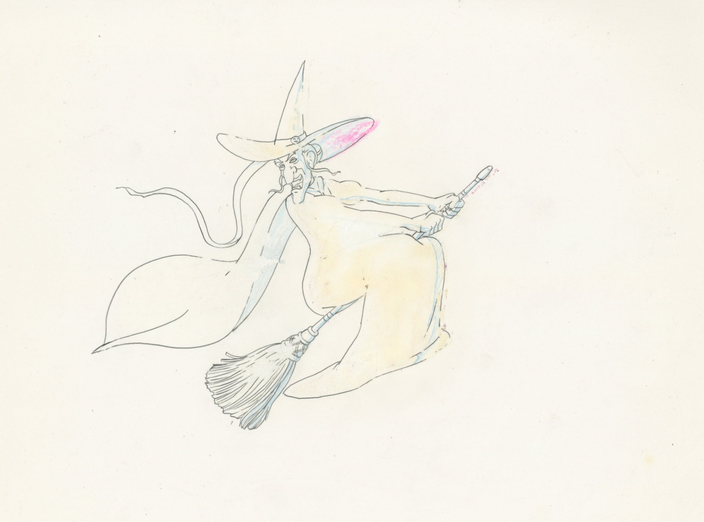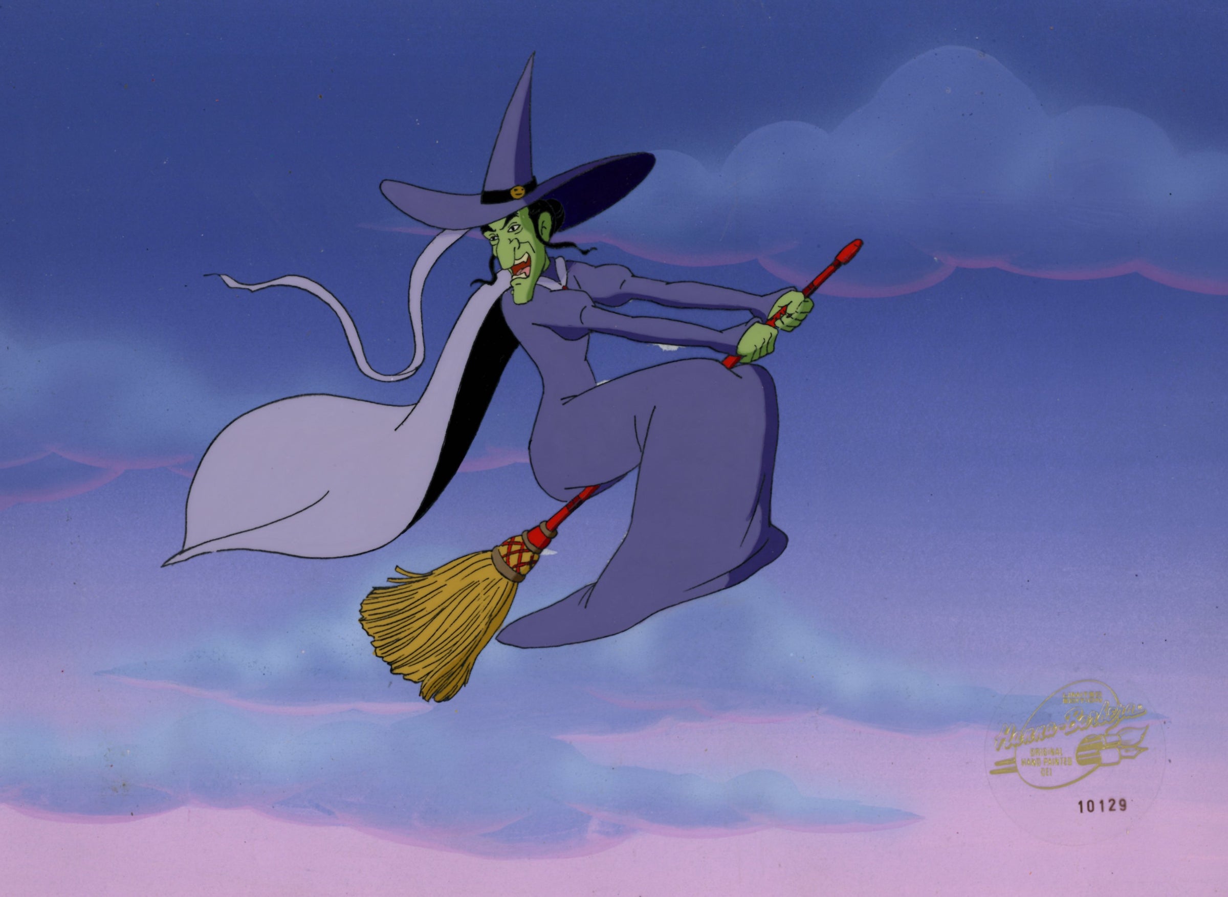 ABOUT THE MEDIUM: Original production cels are one-of-a-kind pieces of art that were used in the creation of an animated film or television show. Each has been hand-painted by studio artists on a piece of celluloid acetate, and has been photographed over a background painting to create a frame of the finished production.