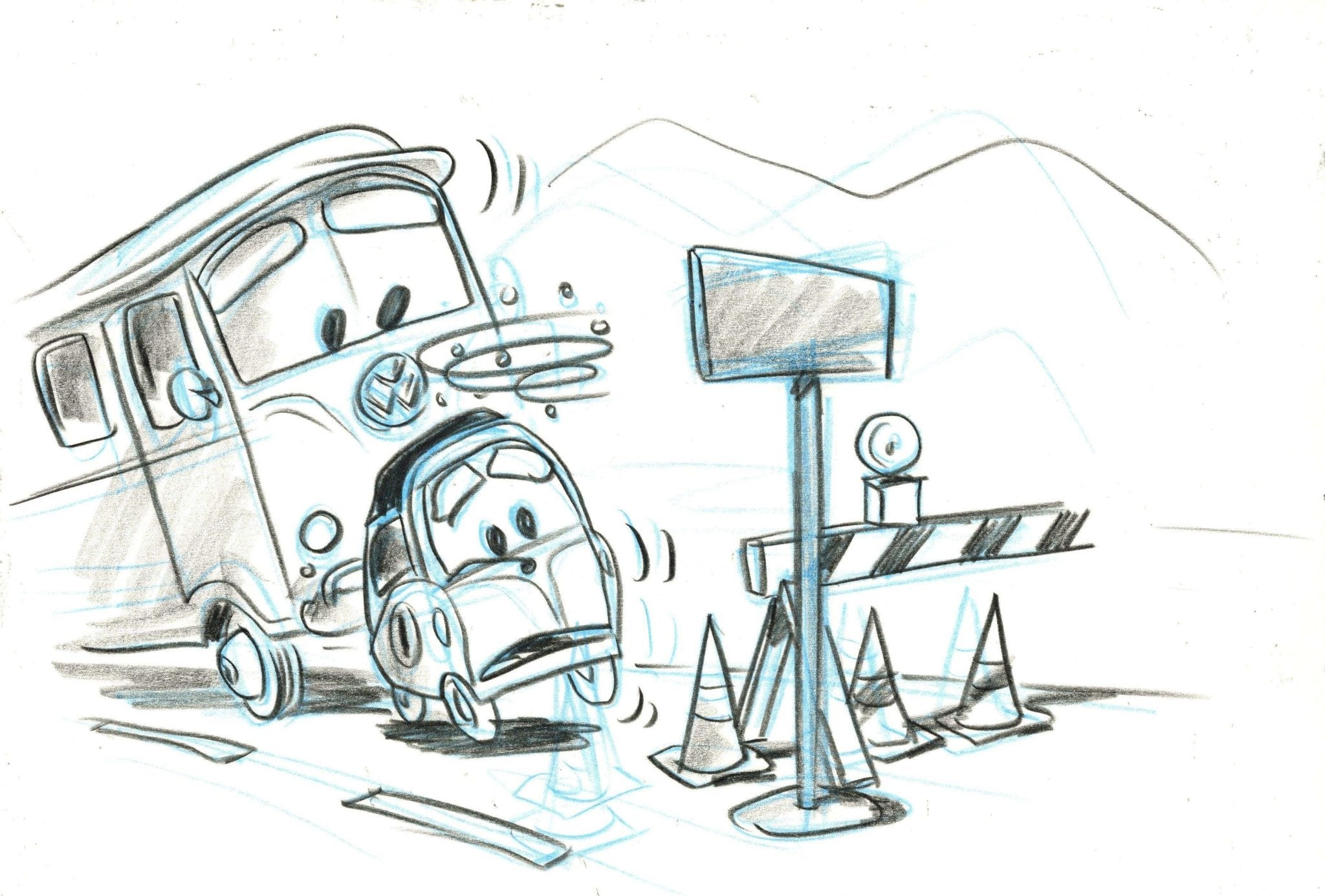 ABOUT THE IMAGE: Presented here is a wonderful original beat board from Disney storyman Jorgen Klubien. Klubien is an animation artist and writer best known for his work on Disney films, like The Lion King (1994), A Bug's Life (1998), Cars (2006) and Frankenweenie (2012). The boards were rendered with black and blue colored pencil on 13" x 10.5" paper.