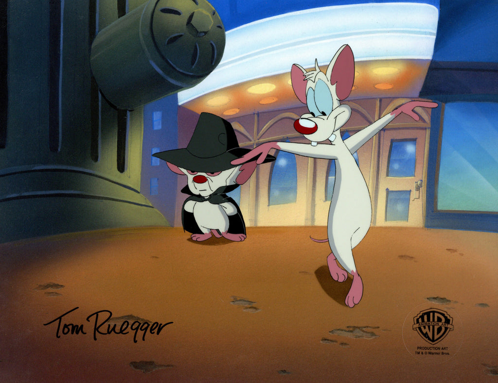 Pinky and the Brain is an animated television show that follows the adventures of two genetically enhanced laboratory mice, Pinky and Brain, as they attempt to take over the world created by Tom Ruegger. Brain, the more serious of the two, is the mastermind behind their schemes, while Pinky, the more emotional and silly of the two, is his loyal sidekick. Despite their intelligence, the mice's plans to take over the world always seem to fail, due to their own incompetence or unexpected obstacles. The show often parodies popular culture and political figures, with the mice frequently encountering celebrity guest stars.
