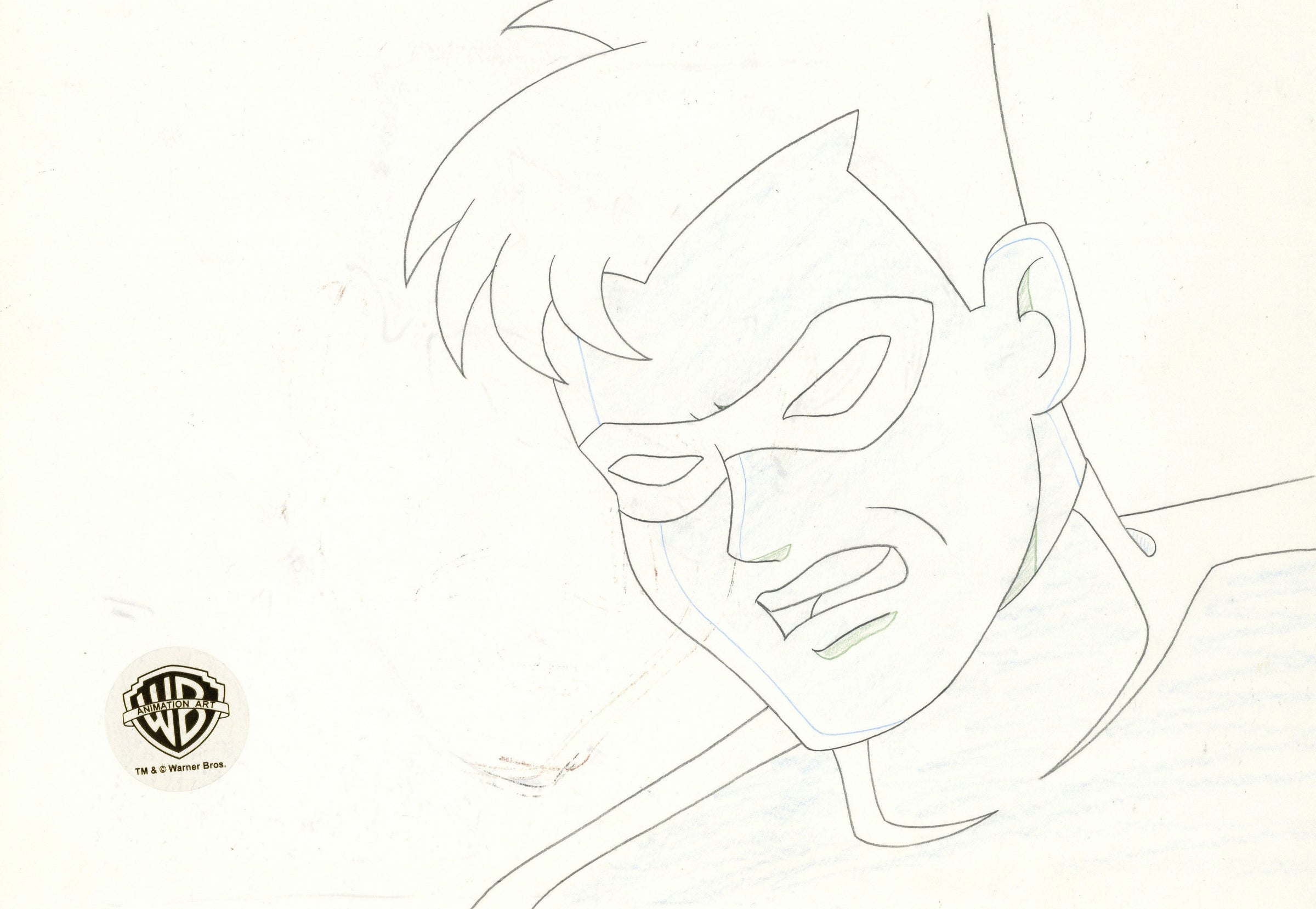 Batman The Animated Series Original Production Cel on Original Background with Matching Drawing: Robin