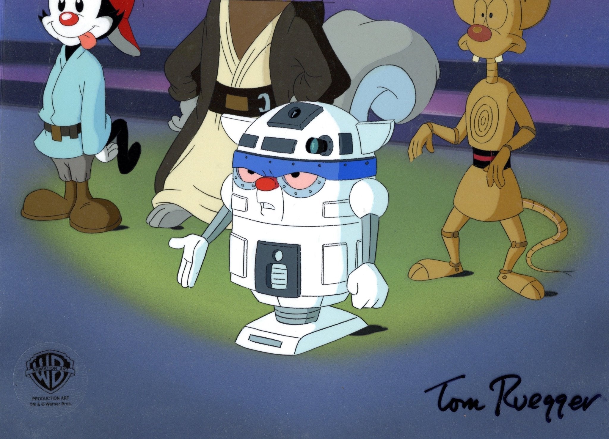 ABOUT THE IMAGE: What would happen if Star Wars and Animaniacs were put in a blender? The final Pinky and the Brain episode, Star Warners is the answer. The episode, which includes many of the Animaniacs cast is a Star Wars parody of A New Hope, Empire Strikes Back, and Return of the Jedi with Pinky and the Brain (as 3-PinkEO and Brain2-Me2) planning to use the Mega Star for their galactic domination plans. This piece comes with a certificate of authenticity.