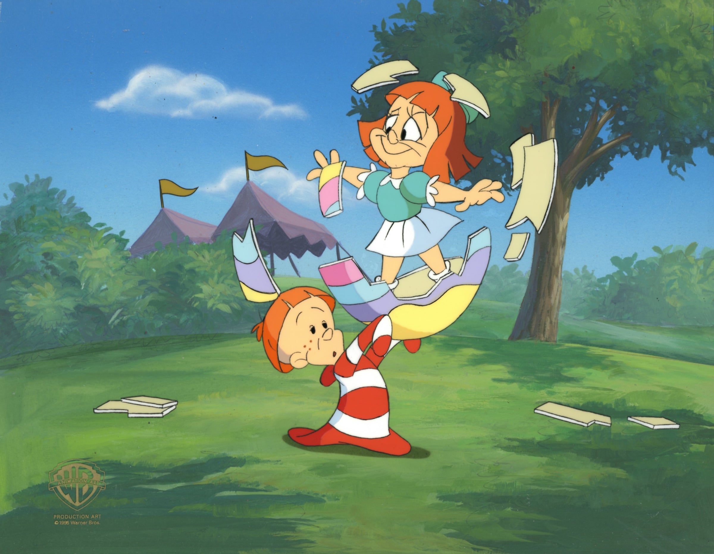 ABOUT THE IMAGE: Steven Spielberg Presents Tiny Toons, usually referred to as Tiny Toon Adventures, an American animated television series created by Tom Ruegger and produced by Amblin Entertainment and Warner Bros. Animation. In this series, a new generation of characters study at Acme Acres Looniversity under the instruction of the classic Looney Tunes characters. The leading characters are Buster and Babs Bunny (no relation) who, with their classmates, have a variety of adventures that are a mix of original stories, film and TV parodies and modern remakes of classic WB shorts. This piece comes with a certificate of authenticity.