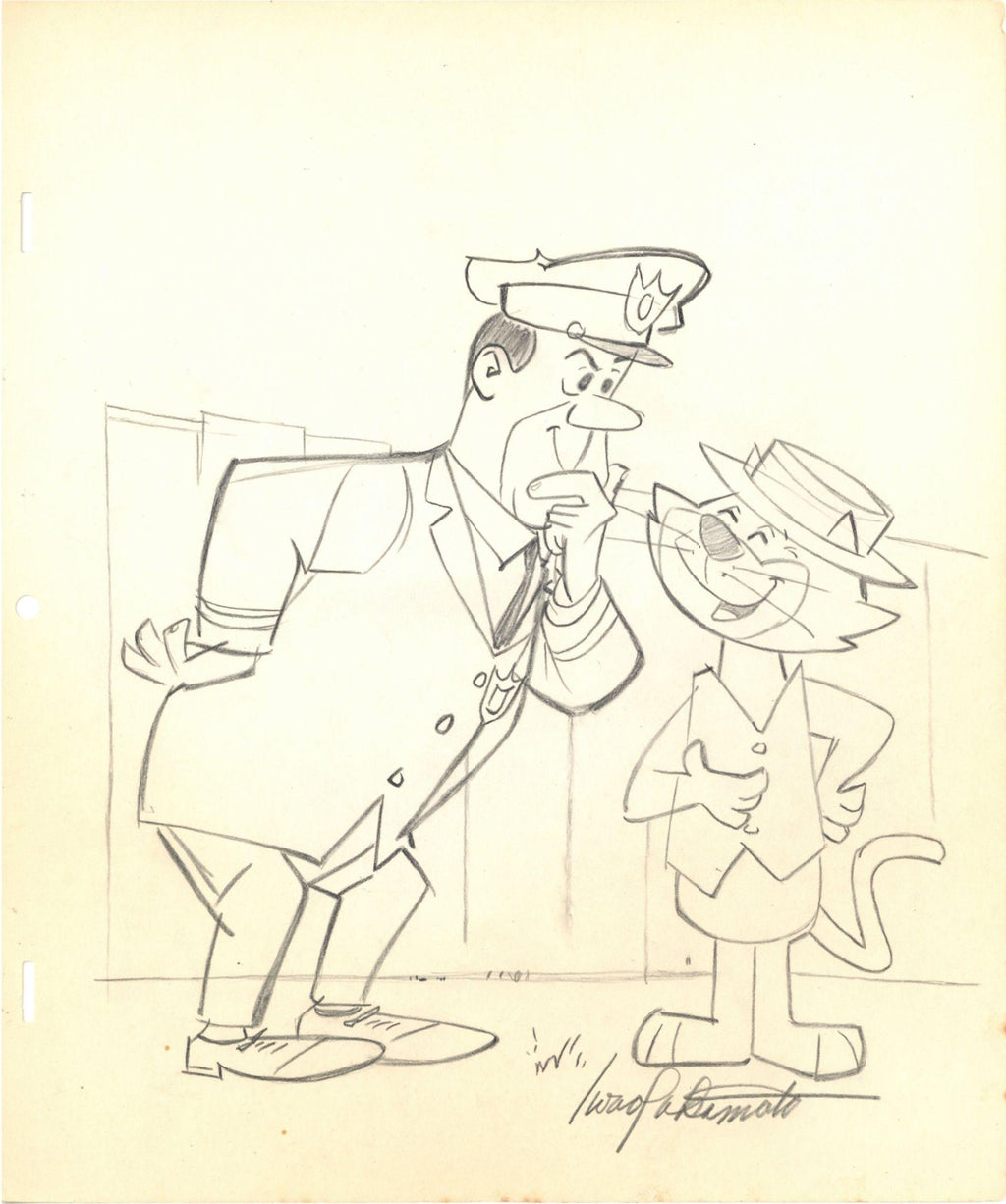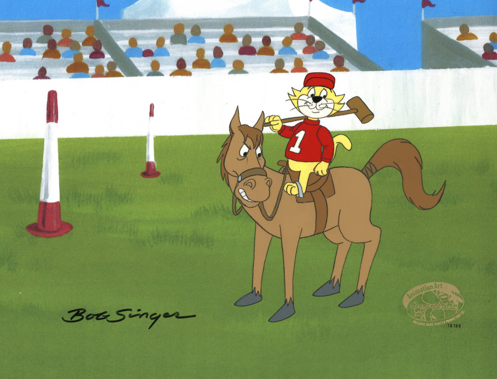 Top Cat is a character from the 1961 Hanna-Barbera animated television series "Top Cat." He is a smooth-talking alley cat, who is the leader of a gang of street-wise cats and is known for his clever schemes, his wit, and his role as the main protagonist in the series. Top Cat is depicted as a charismatic and cunning alleycat, who is always looking for a way to get ahead in life. Despite his sometimes shady methods, Top Cat is also depicted as a loyal and caring friend, who is always willing to help his fellow cats and protect them from harm. Throughout the series, Top Cat and his gang navigate the challenges of life on the streets, and they become beloved and enduring figures in the world of animated television.
