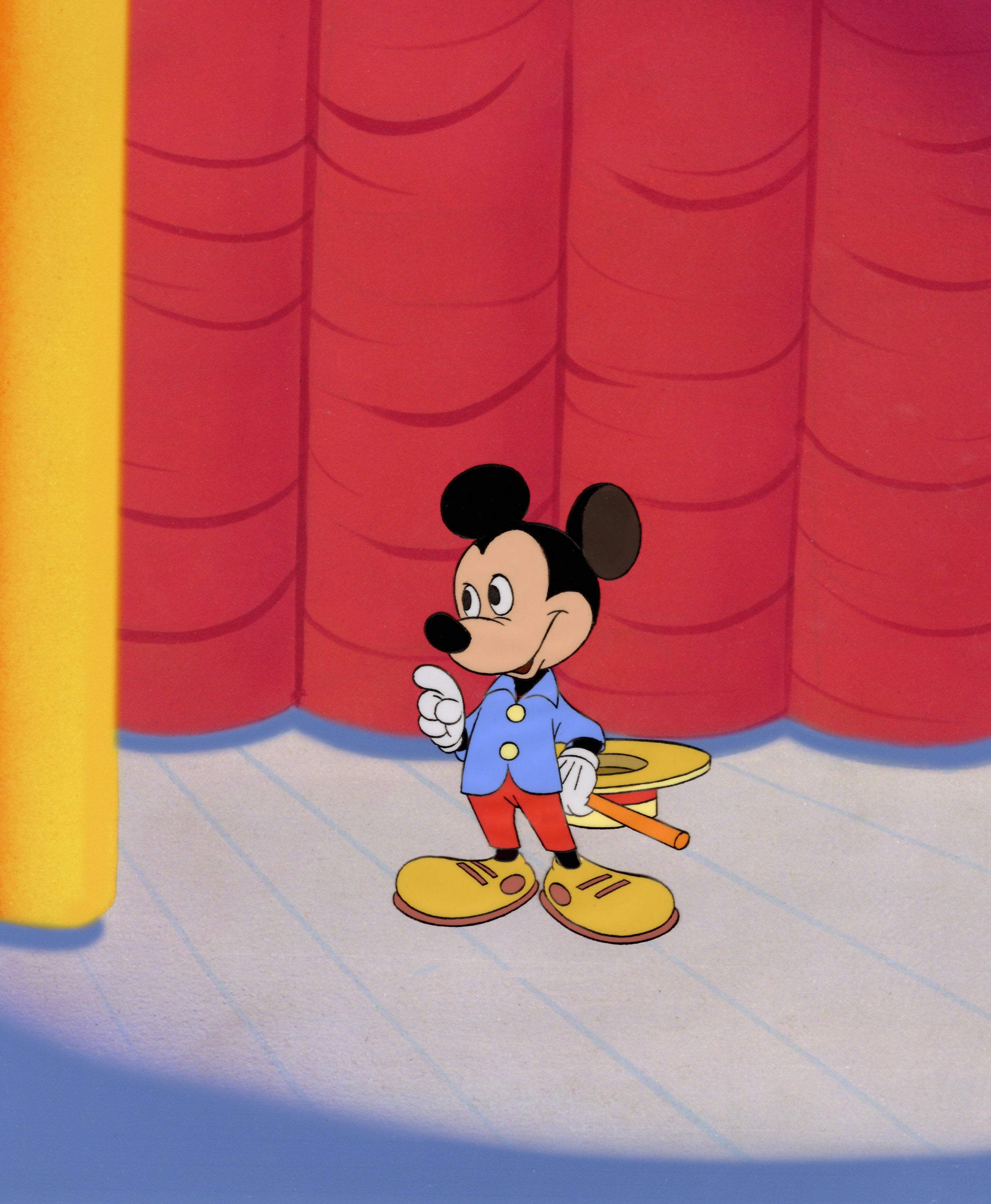 ABOUT THE IMAGE: It's Mickey's 40th birthday and he's dressed to impress every viewer out there in this production cel from "The Mickey Mouse Anniversary Show" episode of Walt Disney's Wonderful World of Color. Directed by Ward Kimball and animated by Les Clark - both Disney Legends and part of Disney's "Nine Old Men" - the episode aired on 12/22/1968 and paid homage to Mickey's humble origins, his rising popularity, and his undeniable cultural impact around the world.